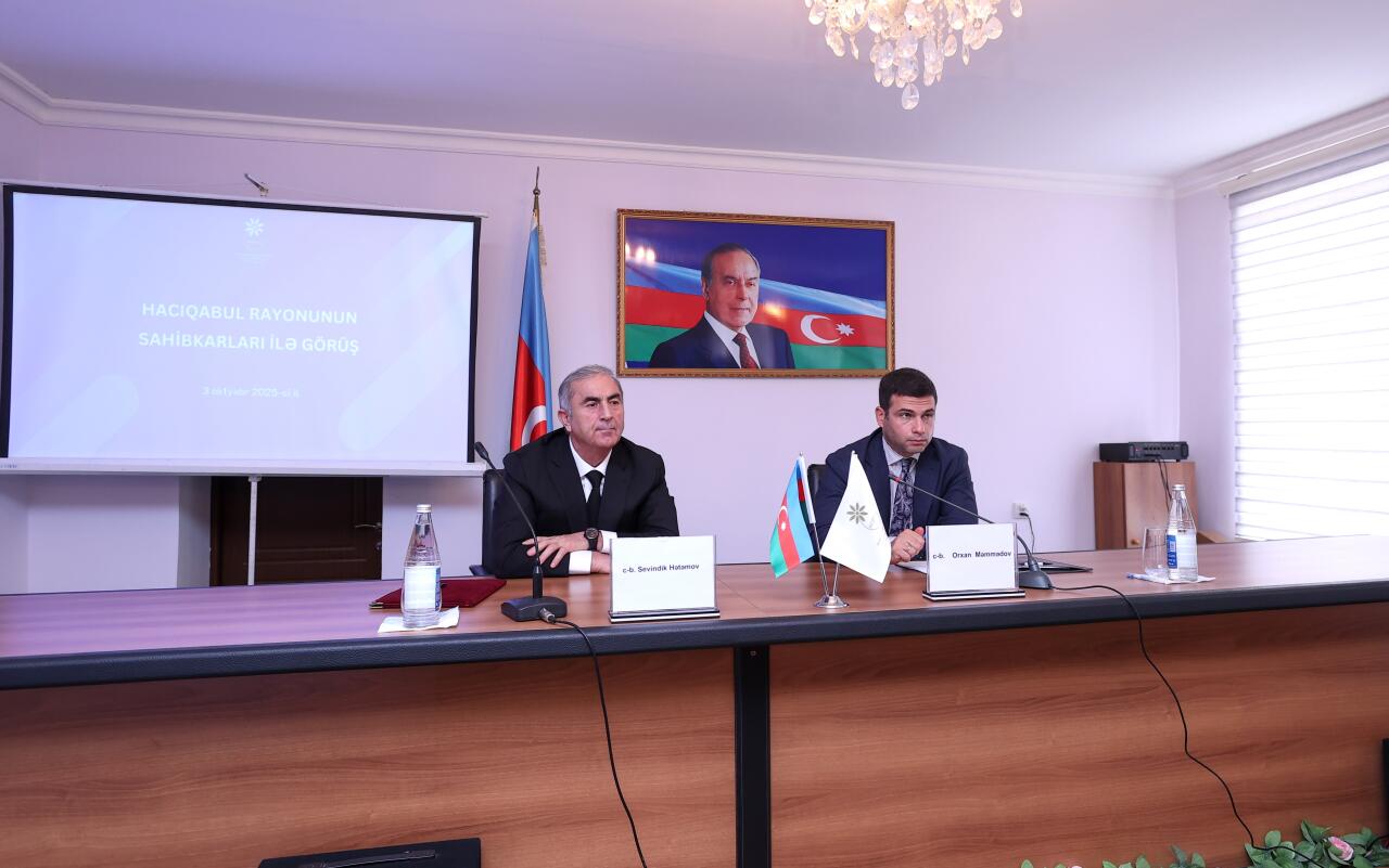 Tədbirdə Hacıqabul rayonunda biznes və investisiya qoyuluşu üçün imkanlar və çağırışlara dair müzakirələr aparılıb, sahibkarların təklifləri dinlənilib.