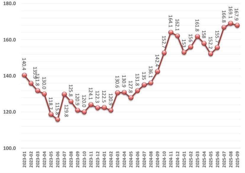 Birləşmiş Millətlər Təşkilatının Ərzaq və Kənd Təsərrüfatı Təşkilatı (FAO) Ərzaq Qiymətləri İndeksi (FFPI) 2025-ci ilin sentyabr ayında orta hesabla 128.8-ə bərabər olub. Bununla da ərzaq qiymətləri indeksi avqust ayı ilə müqayisədə 0.7% azalıb və ötən ilin müvafiq dövrü ilə müqayisədə isə 3.4% artıb.
