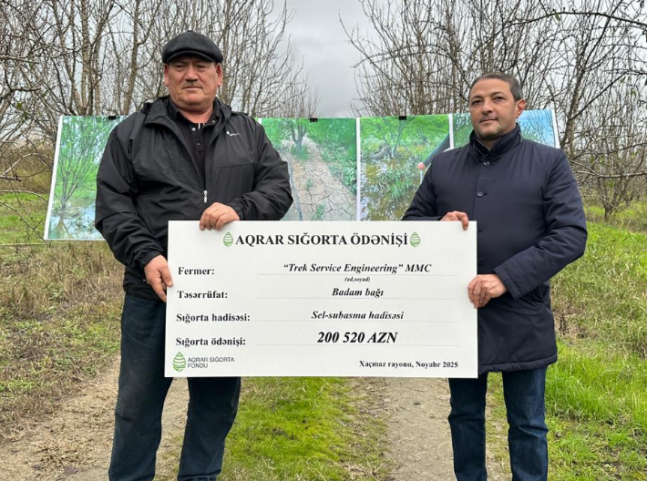 "Trek Service Engineering" MMC şirkətinə məxsus bağ sahəsində isə sel-subasma hadisəsi olub və badam bağına ziyan dəyib. Onlar da əvvəldən işlərini etibarlı tutub və bağı sğorta etdiriblər. Sığorta üçün isə cəmi toplam 8 min manat ödəniş ediblər. Dəymiş ziyana görə onlar da öz növbəsində Aqrar Sığorta Fonduna müraciət ediblər və 200 min 520 manat sığorta ödənişi alıblar.