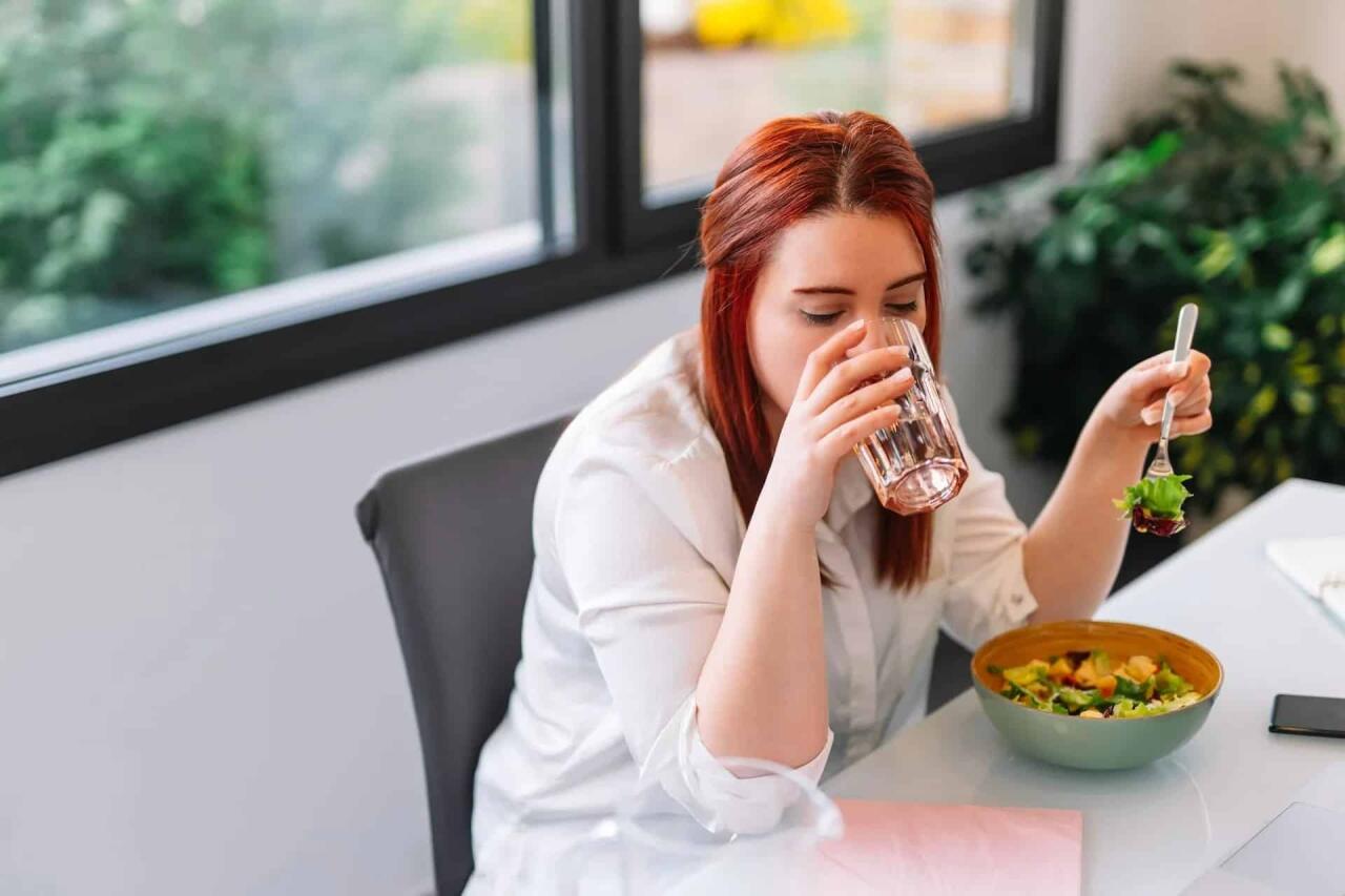 Qidalanma və diyetologiya mütəxəssisləri suyun mədədə yer tutaraq daha tez toxluq hissi yaratdığını, bunun kalori qəbulunu məhdudlaşdırmaq istəyənlər üçün bir strategiya kimi istifadə edilə biləcəyini qeyd edirlər. Lakin suyun qidaları kifayət qədər çeynəmədən udmaq məqsədilə istifadə edilməməsinin vacibliyi xüsusilə vurğulanır.