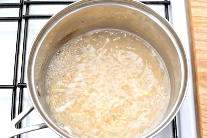 4 stəkan qaynayan suya yarım kilo arpa əlavə edərək qarışdırılır.