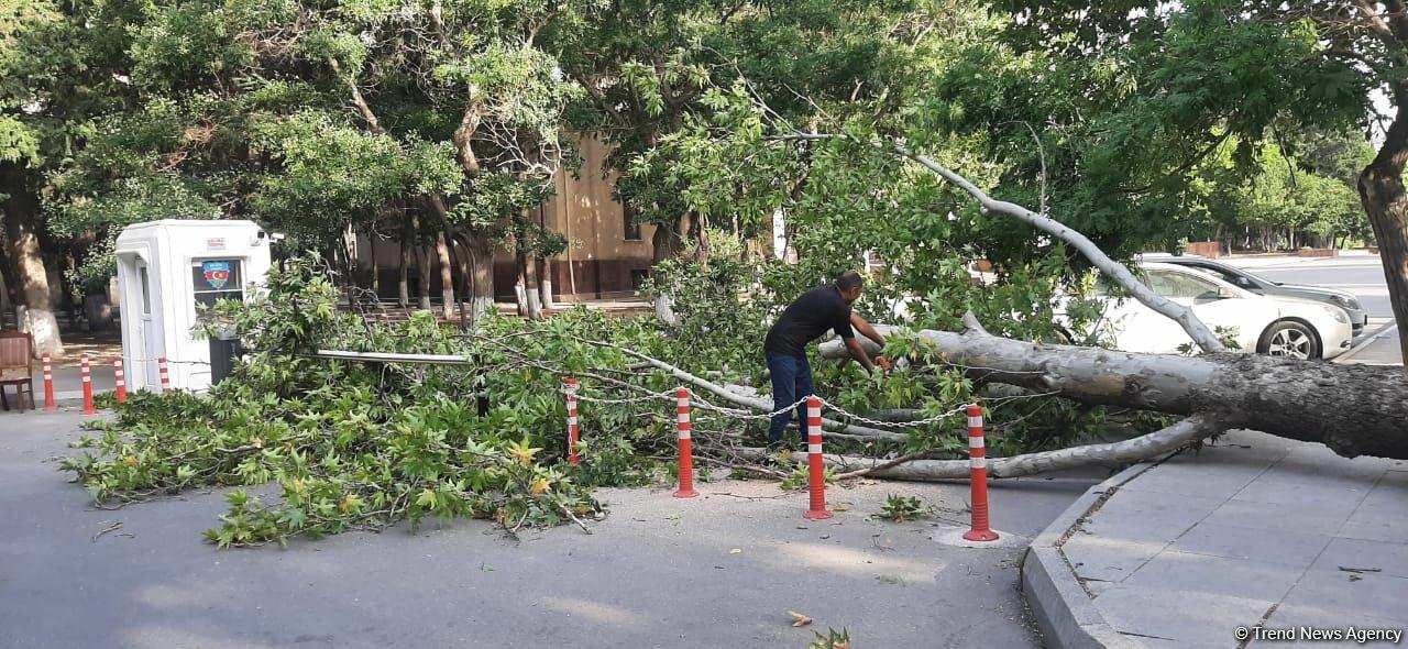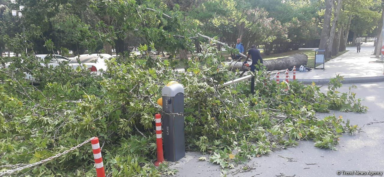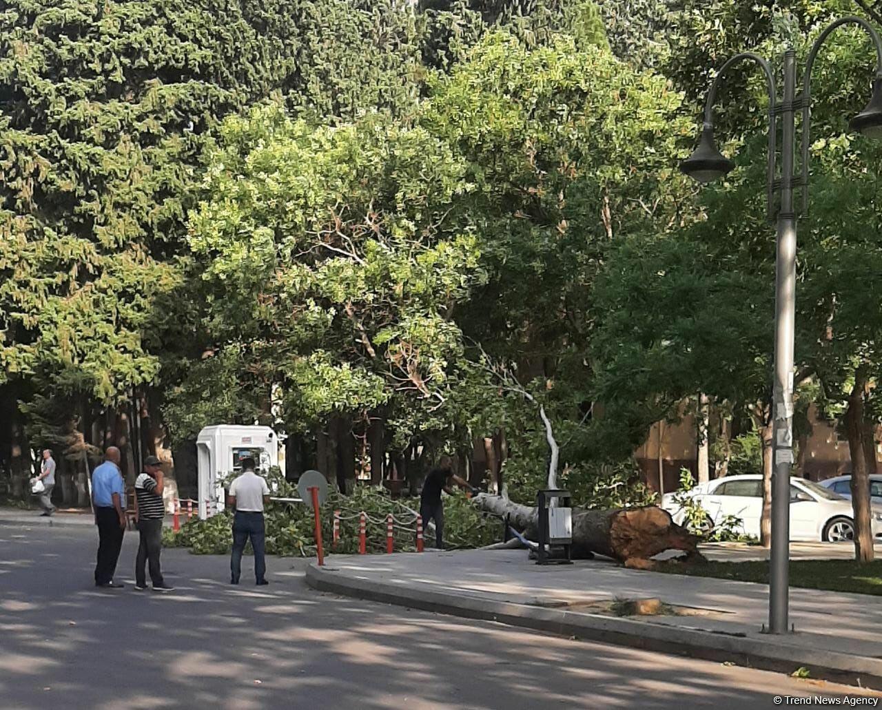 Bakıda güclü külək nəticəsində bir ağac aşıb.