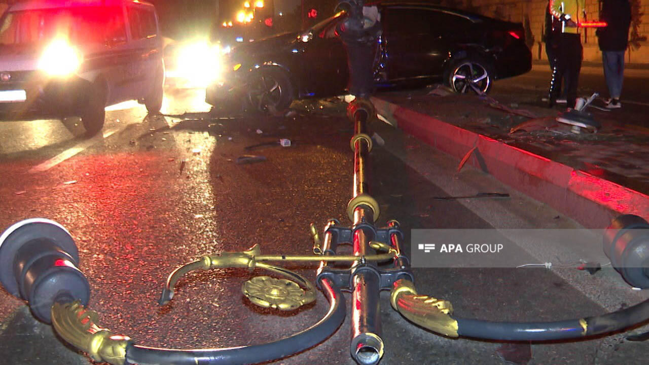 Zərbənin təsirindən işıq dirəyi yerindən qopub, yol infrastrukturuna ziyan dəyib.