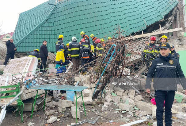APA xəbər verir ki, dağıntılar altında qalanlar FHN-in Dövlət Yanğından Mühafizə və Xüsusi Riskli Xilasetmə xidmətlərinin əməkdaşları tərəfindən xilas edilir.