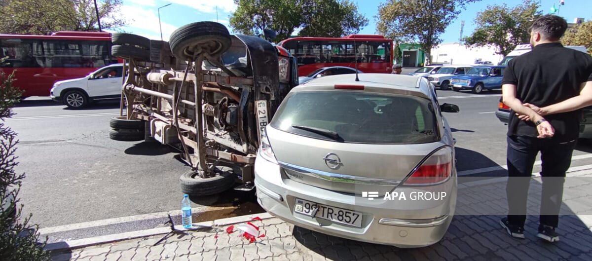 Milli.Az xəbər verir ki, şəhər ərazisində "QazEL "markalı yük avtomobili idarəetmədən çıxaraq yol kənarındakı dayanan "Opel" və "Şevrolet " markalı minik maşınlarına çırpılıb.