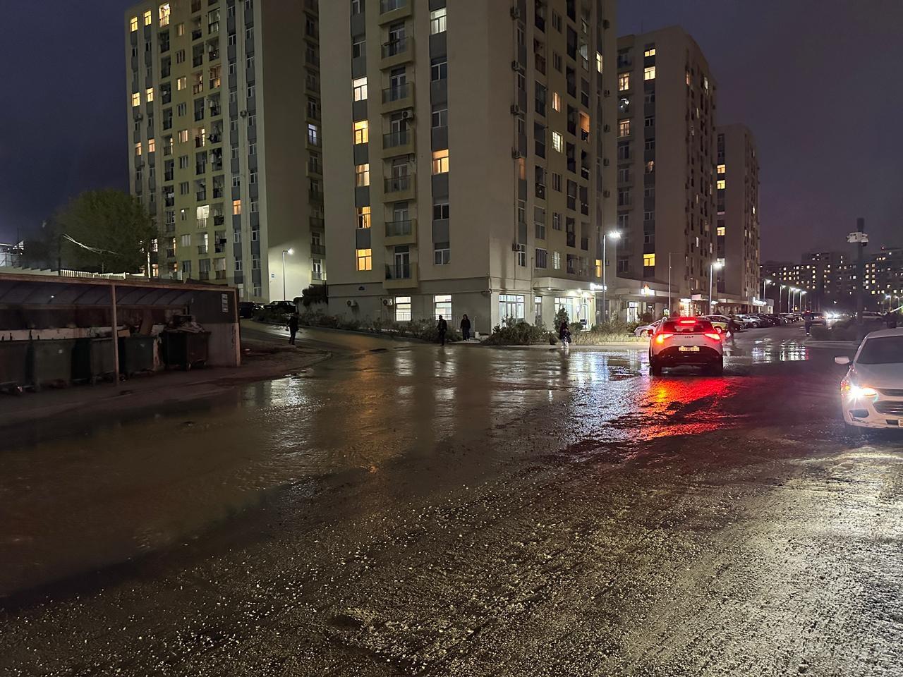 Milli.Az xəbər verir ki, Yasamal rayonu, Müstəqillik küçəsində MİDA yaşayış kompleksinin həyətində su xətlərinin partlaması nəticəsində yolu su basıb.