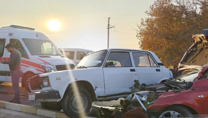 "VAZ 2107" və "KIA" markalı avtomobillərin toqquşması nəticəsində 4 nəfər xəsarət alıb.