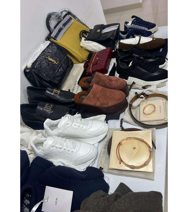 Vətəndaşın yüklərinə baxış zamanı ona məxsus baqajdan və əl çantasından əvvəlcədən gömrük orqanına bəyan edilməyən ayaqqabı, çanta, üst geyimlərindən ibarət 32 ədəd kommersiya təyinatlı brend məhsullar (Celine, Chanel, Hermes, Dolce & Gabanna, Dior, Burberry, Louis Vuitton, Prada, Loro Piano) və "Bulqari" markalı zərgərlik məmulatları aşkar edilib.