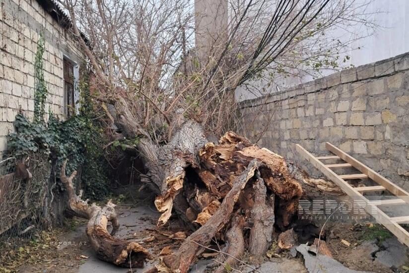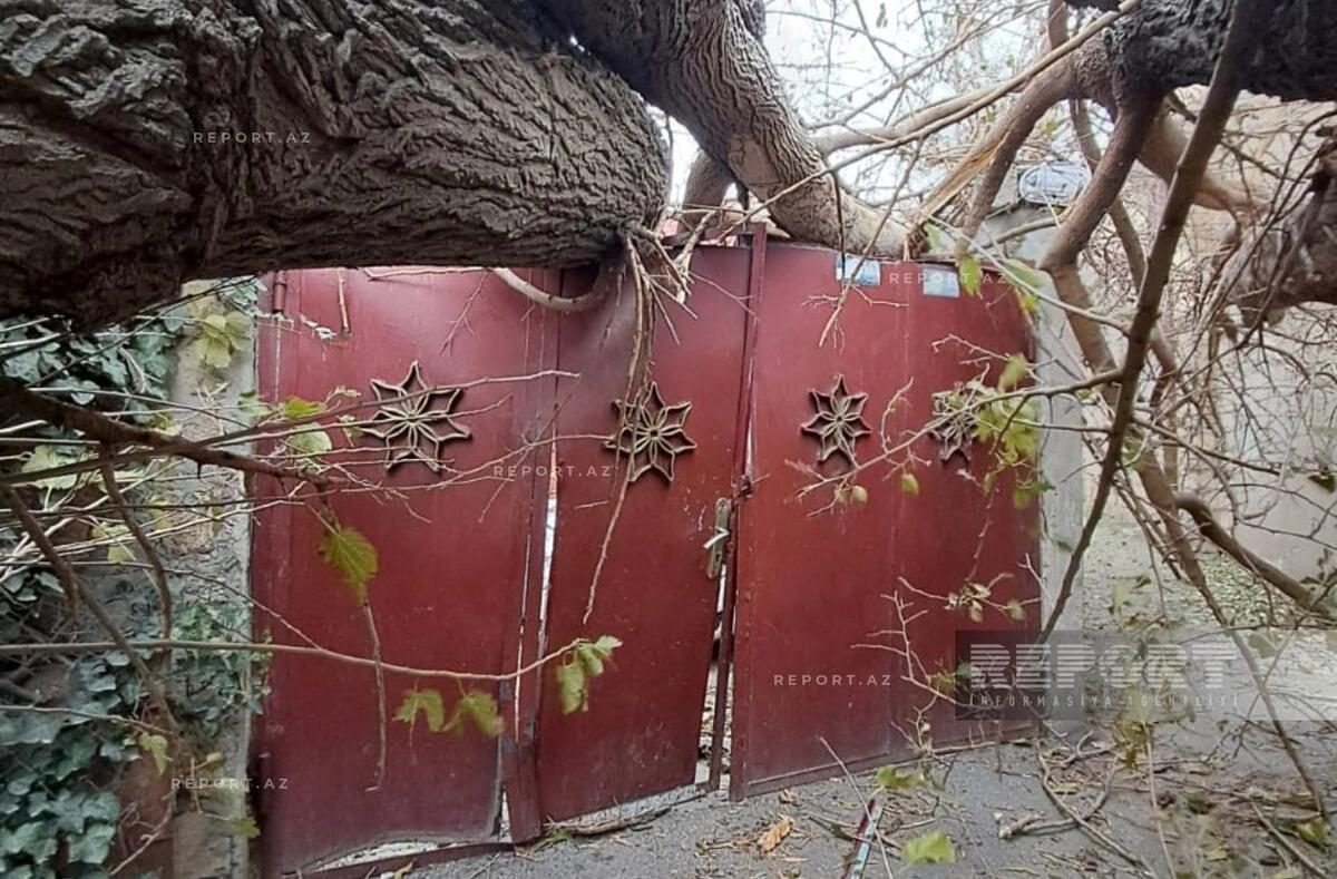 Qırılmış ağac küçədə sakinlərin hərəkətinə mane olub. Hadisə nəticəsində ətrafda olan evlər işıqsız qalıb.