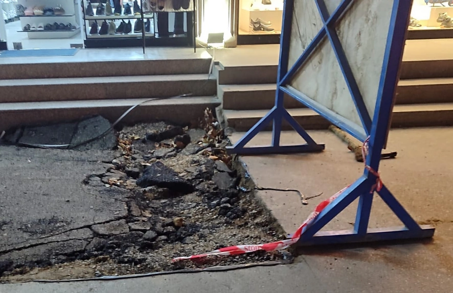 Paytaxtın Xətai rayonu Məhəmməd Hadi küçəsindəki səkidə asfalt qatı çöküb.