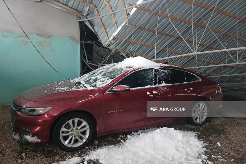 Milli.Az-nın məlumatına görə, gecə saatlarından başlayan güclü qar yağışı kənd sakinlərindən birinə məxsus evin talvarının uçmasına gətirib çıxarıb.