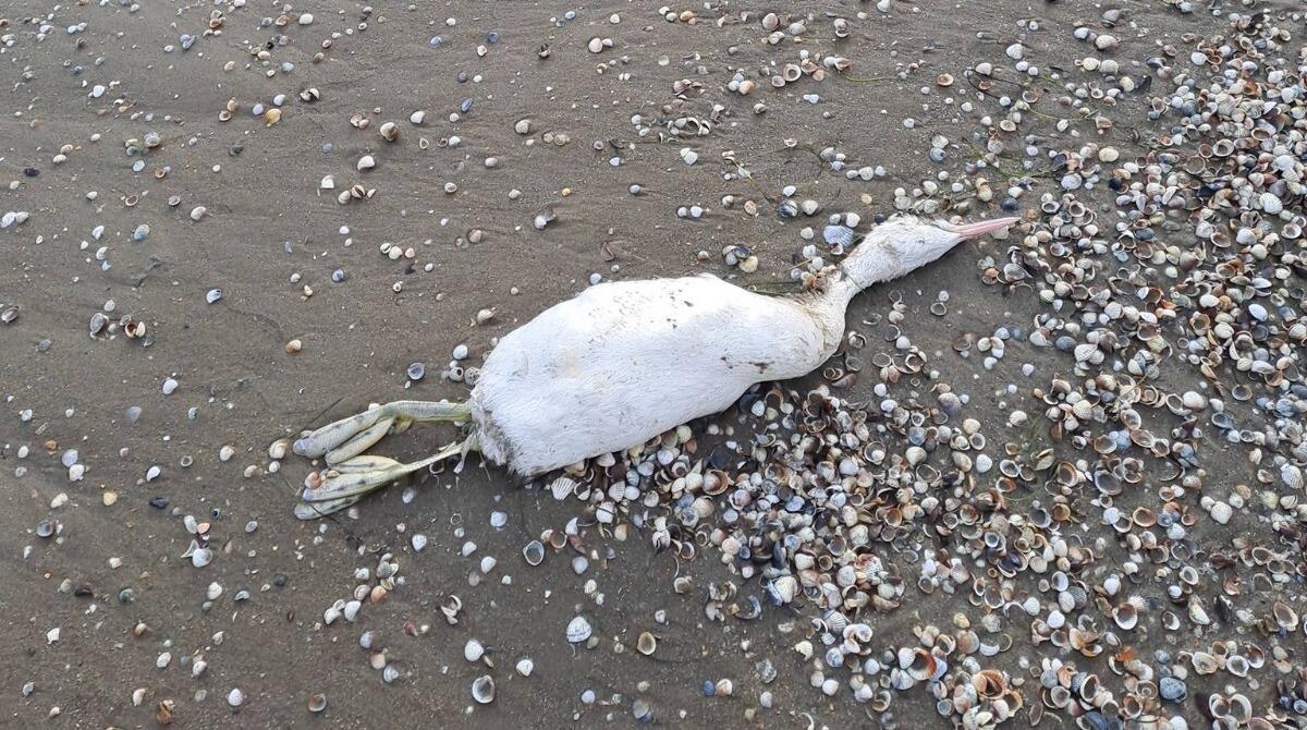 Yayılan fotolarda dalğalar tərəfindən sahilə atılmış quş cəsədləri əks olunub.