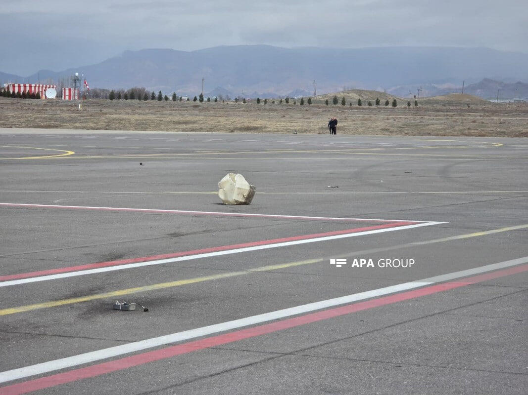 Milli.Az xəbər verir ki, dronun qalıqları hava limanının uçuş-eniş zolağına düşüb, bir neçə yerdə asfalt örtüyü zədələyib.