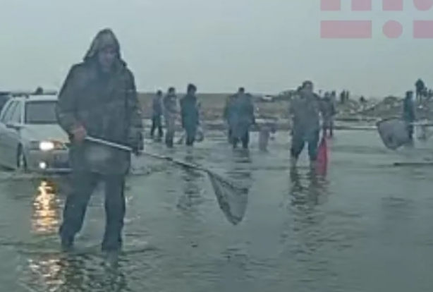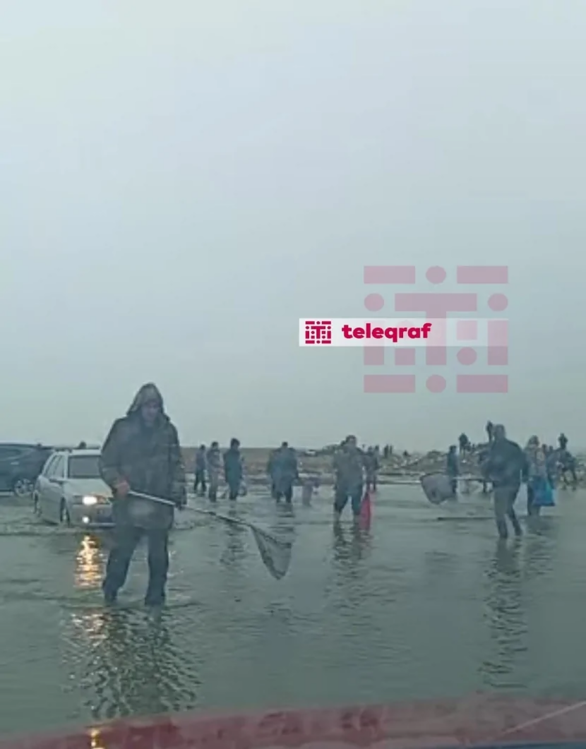Hadisə zamanı ərazidən keçən bəzi şəxslər yaranmış vəziyyətdən istifadə edərək, ətrafa yayılan balıqları tor vasitəsilə tutmağa başlayıblar.\ Teleqraf