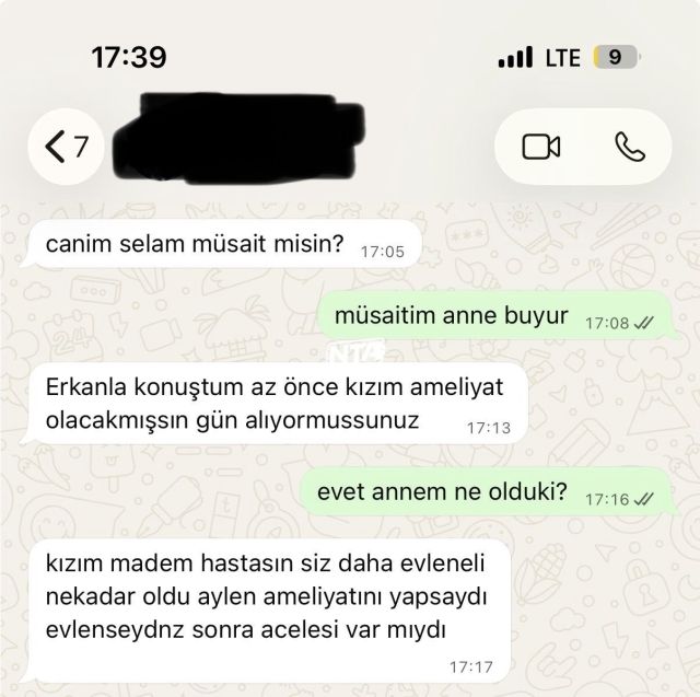 Mesajlarda qayınananın gəlininin əməliyyatına əsaslanaraq evliliyi sorğuladığı görünür. "Xəstə idinsə, ailən niyə əməliyyat etmədi?", "Qonşular da eyni şeyi deyirlər, əgər xəstə idisə, niyə evləndi?" ifadəsi isə mübahisəni fərqli bir səviyyəyə qaldırıb.