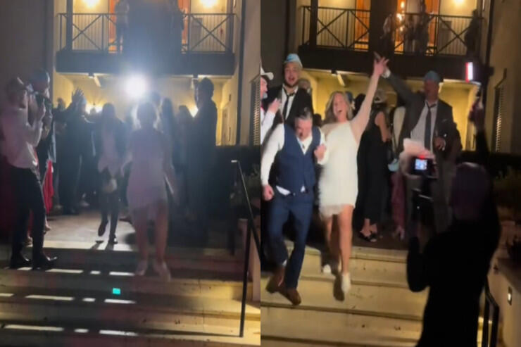 Gəlin əl-ələ gəzdiyi kişiyə tərəf dönərək başqa bir kişinin əlinin tutduğunun fərqinə varır. Hər kəsin dərindən güldüyü bu anlar "TikTok"da 600 mindən çox baxış əldə edib.