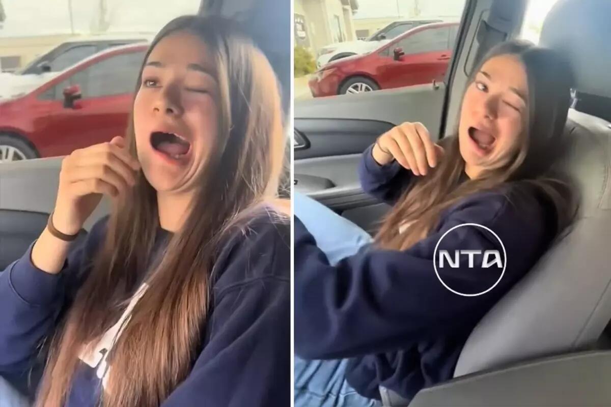 ABŞ-də diş həkimindən çıxan gənc qadının ağzı anesteziya təsiri səbəbindən avtomobilə mindikdən sonra birdən əyilməyə başlayıb. Güzgüyə baxan qadın qorxuya düşüb, rəfiqəsi həmin anları kamera vasitəsilə qeydə alıb.