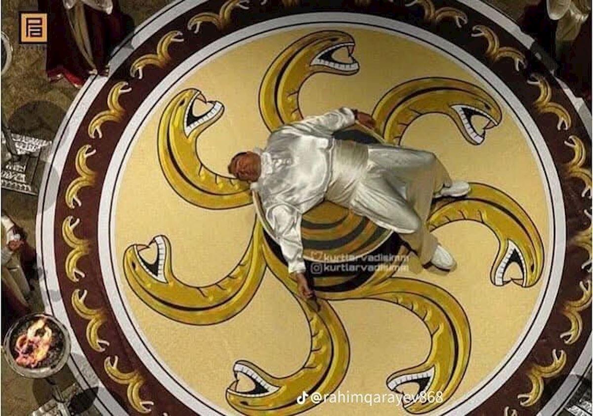 "Mərkəzdə çoxşaxəli ulduz forması yer alır. Bu tip ulduzlar islam memarlığında, Azərbaycan xalça naxışlarında, Şirvanşahlar sarayında və qədim qəbirüstü daşlarda geniş yayılıb. Bu, konkret bir təriqətin deyil, ümumbəşəri həndəsi simvolikanın məhsuludur. Həndəsi fiqurlar insanlıq tarixində ən qədim ifadə vasitələrindən sayılır. Dairə bütövlüyü, simmetriya və mərkəz nizamı isə harmoniya anlayışını ifadə edir".