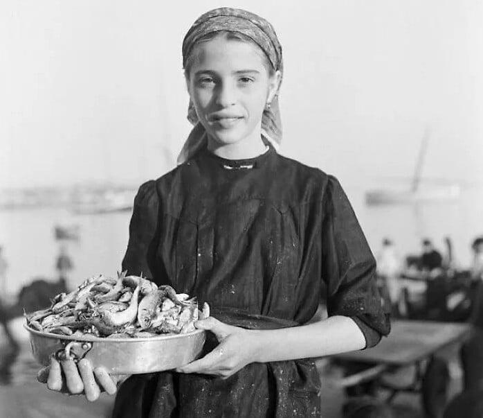 Balıq satan qadın (1910): 1910-cu ildə İngiltərənin London küçələrində balıq satan bir qadın.