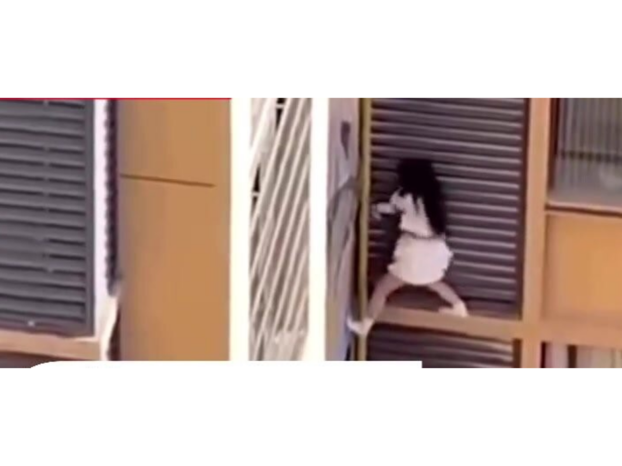 Çıxılmaz vəziyyətdə qalan qadın mənzilin pəncərəsindən çölə çıxaraq binanın 10-cu mərtəbəsində sallanmalı olub. O, bu yolla diqqətdən yayınmağa çalışsa da, həyatını ciddi təhlükə altına atıb.