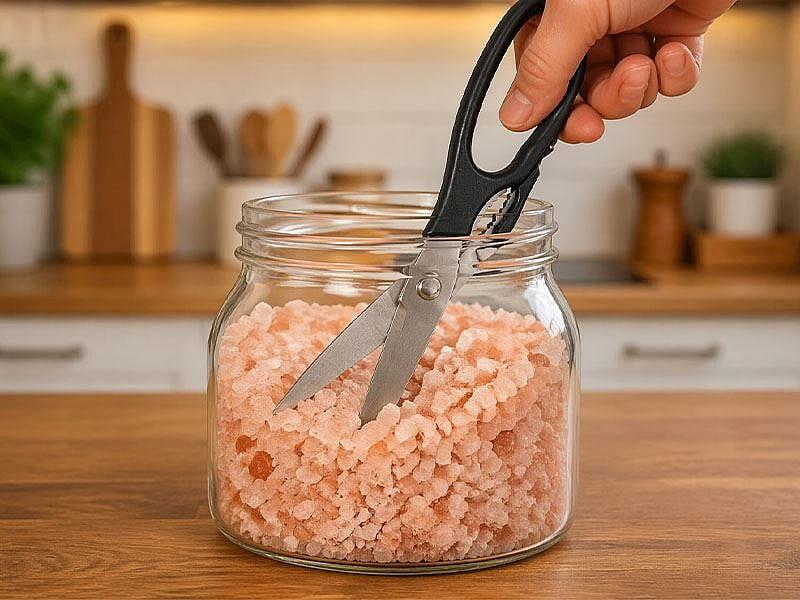 Mətbəxdə qayçınızın əvvəlki kimi kəsmədiyini hiss edirsinizsə, peşəkar itiləmə vasitələrinə ehtiyac duymadan qaya duzu ilə müvəqqəti həll yolu tapa bilərsiniz.