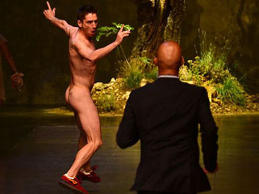 Mühafizəçilər lüt kişini səhnədən çıxarıblar.