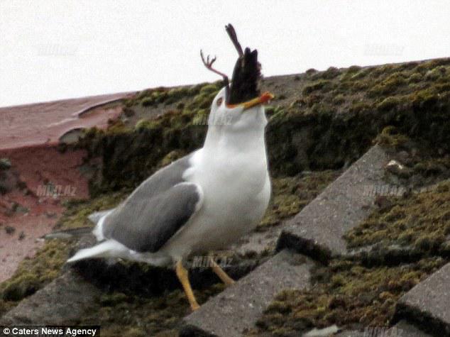 Milli.Az Daily Mail-ə istinadən bildirir ki, Şotlandiyanın paytaxtı Qlazqo şəhərinin yaxınlığındakı Barrhed şəhərində yaşayan Duqi MakKoll qağayının dolaşanı öldürərək udduğu anların fotolarını çəkib.