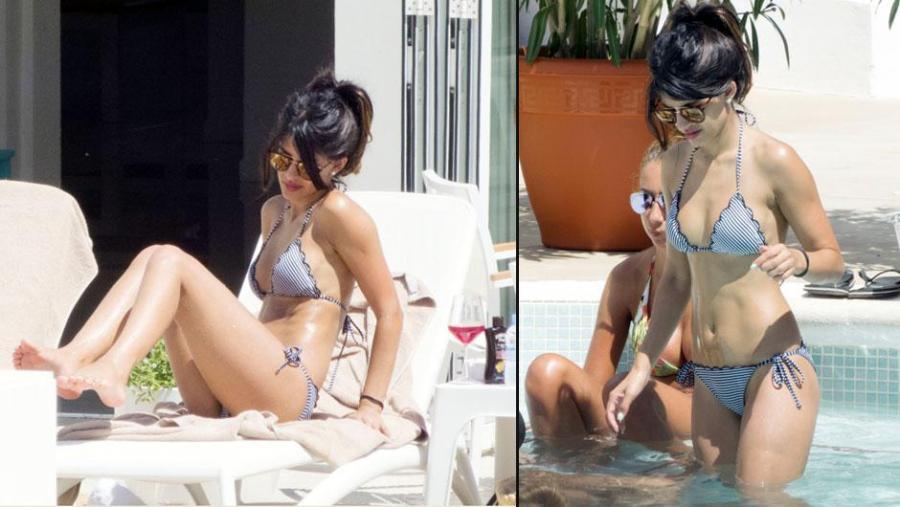 Axşam.az-ın "Hürriyət"ə istinadən xəbərinə görə, ağ-qara çimərlik geyimi ilə dənizə girən aktrisa fotokameralara tuş gəlib.