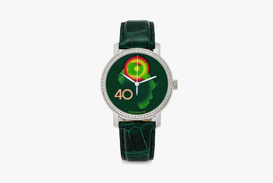 "Chopard Ref. 1278". Qol saatı. Brilyant və 750 əyarlı qızıl. Liviyanın sabiq lideri Müəmmər Qəddafinin 40 illik yubileyi münasibətilə məhdud sayda buraxılıb. Est.: 6-8 min frank (1999-cu il)
