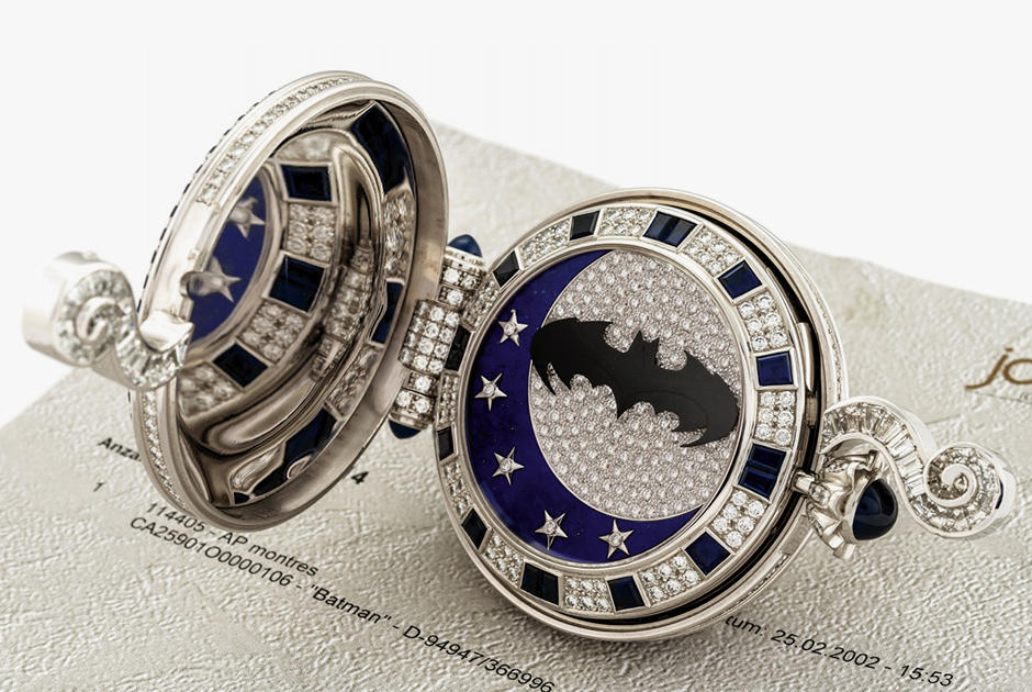 "Audemars Piguet, Batman and Night and Day". Cib saatı. Yeganə nüsxə. 750 əyarlı qızıl, 1599 brilyant və göy yaqut (müvafiq olaraq, 38,18 və 58,67 karat). Est.: 220-320 min frank (2002-ci il)