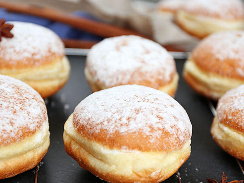 Xəmiri hazırlamaq üçün quru ərzaqları bir qaba töküb qarışdırın.Unu təpələyib ortasında çala açın, süd, isti su və bitki yağın əlavə edin. Yumurtaları qırdıqdan sonra xəmiri yoğurmağa başlayın.Yaxşıca yoğurduqdan sonra üzərini örtüb, yarım saat mayalanmasını gözləyin.