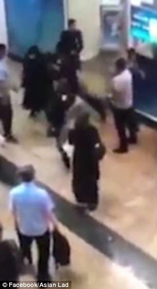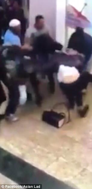 Hicablı qadınlardan biri o birini vurub, sonra saçlarından tutaraq sürüməyə başlayıb. Daha sonra isə o, "rəqib"inin başındakı hicabı açıb.