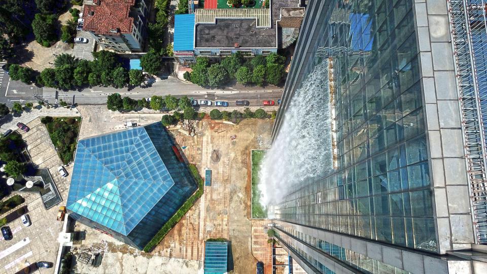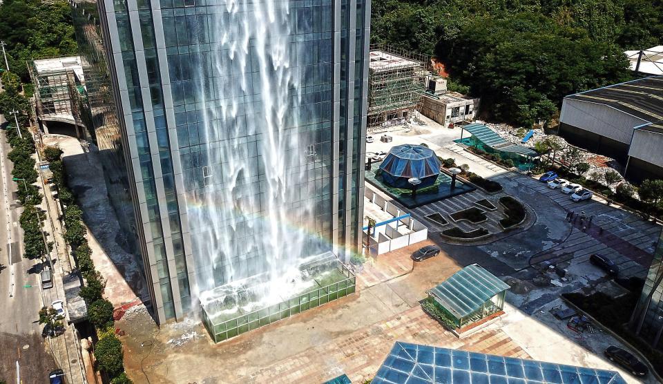 Milli.Az xarici mətbuata istinadla xəbər verir ki, Çinin Guiyan şəhərində göydələnin qarşısında hündürlüyü 108 metr olan şəlalə yaradılıb.