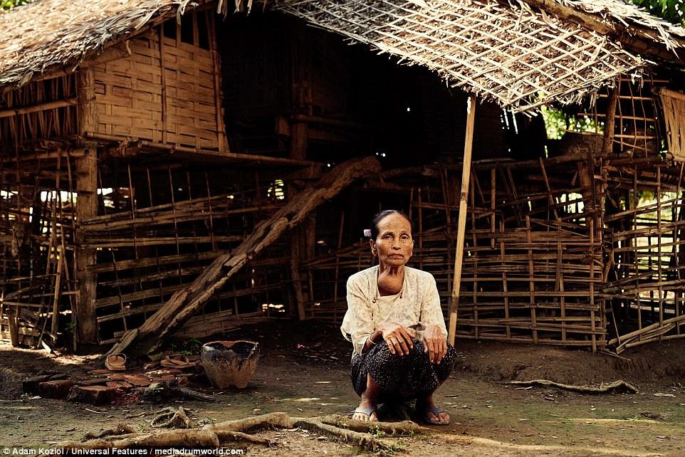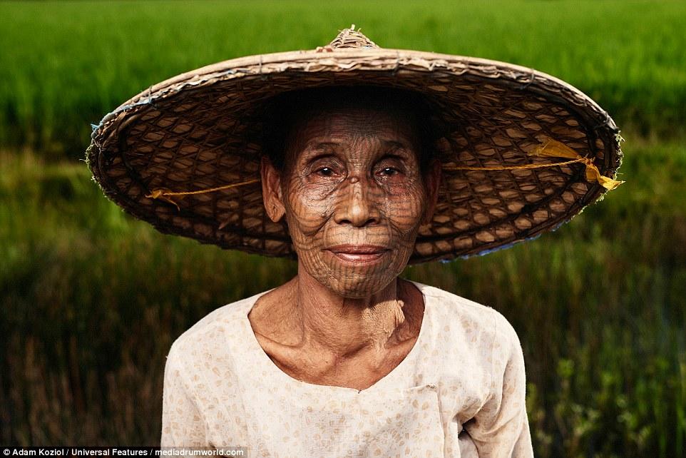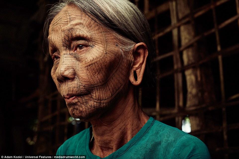 Myanmanın dağlıq bölgələrində yaşayan çin tayfasından olan qadınlar və qızların üzləri döymələrlə doludur.