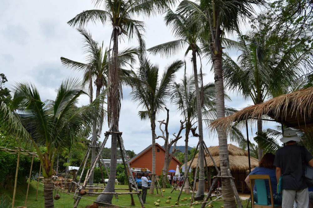 Kokosun necə yığıldığını görmək bizə digər ailə təsərrüfatında - Lamay rayonunda fəaliyyət göstərən "We Green Farm" fermasında və eyniadlı restoranında nəsib oldu. Bu məşğuliyyət üçün çox vaxt xüsusi təlim keçilmiş makakalardan istifadə edilir. Bu maraqlı proses fermanın ərazisində yerləşən Tay Mədəniyyət Parkında nümayiş etdirilir. Meymunlar sahibin komandası üzrə kokos palmasına dırmaşır və kokosları oradan qoparıb yerə atırlar. Bu vaxt palmadan uzaqda dayanmaq daha yaxşıdır, çünki kokoslar böyük və ağırdır.