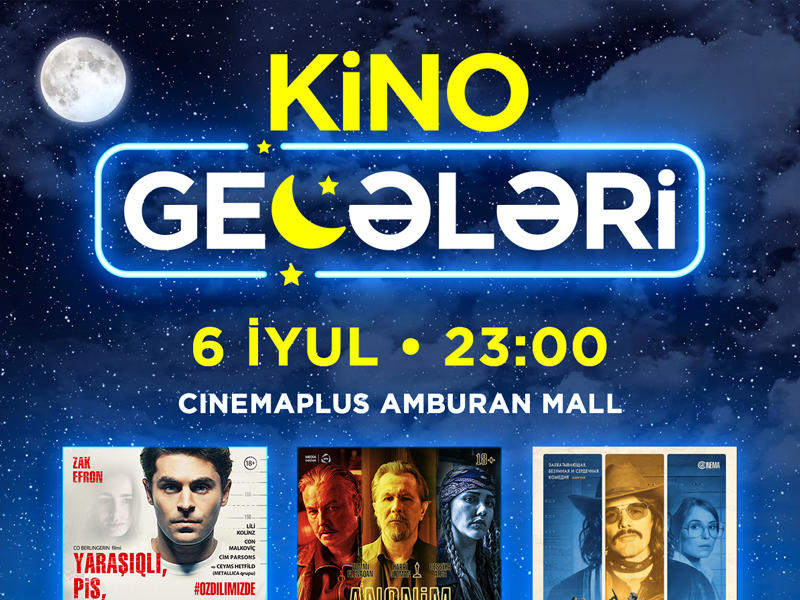 İyul ayının 6-dan 7-nə keçən gecə "CinemaPlus Amburan Mall" kinoteatrında üç filmin nümayişi ilə "Kino Gecəsi" keçiriləcək.