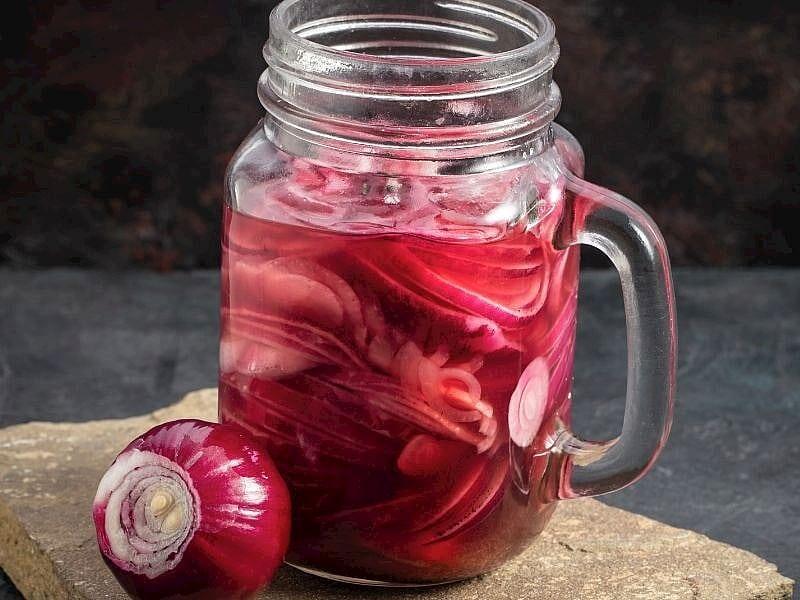 İsti suyu soğanların üzərinə tökdükdən sonra bankanın ağzını bağlayın. Otaq temperaturunda 30 dəqiqə gözlətmək kifayətdir. Bu müddətdə soğanlar o məşhur parlaq çəhrayı rəngini alacaq.