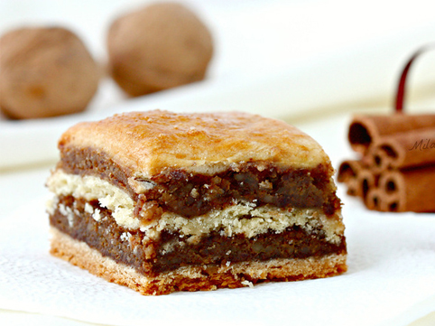 Paxlavanı soyuducudan çıxarın, tərəfi 5 sm olan kvadratlara bölün, üzərinə yumurta sarısı çəkin, sobada 15 dəqiqə bişirin. Sonra dərəcəni 180-ə endirib daha 30 dəqiqə bişirin.