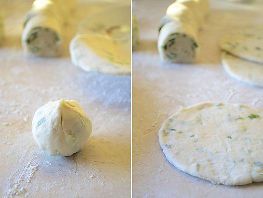Hər dilimin ucunu bərkidin, sonra əlinizlə yastılayıb, 10 sm diametrində yayın. Yaxşı olar ki, bu zaman çox un səpməyəsiniz, çünki qızardanda həmin un yanacaq.