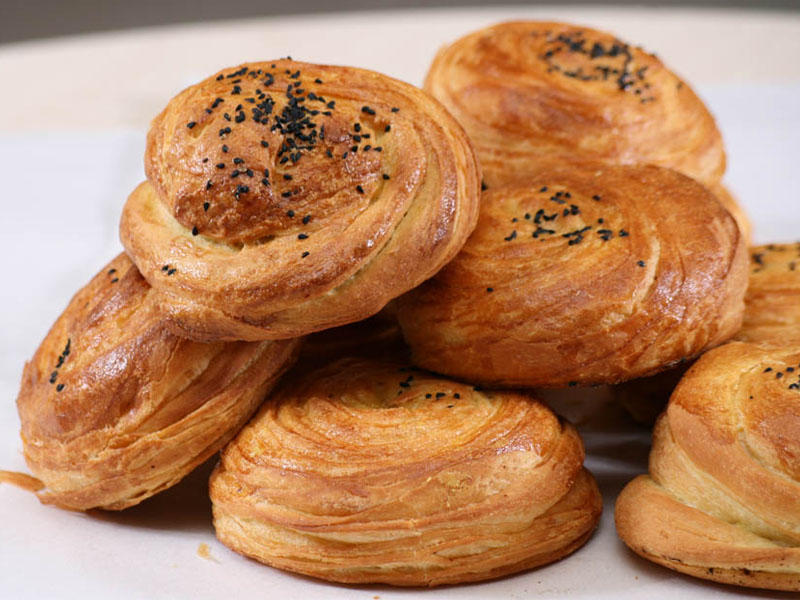 Ələnmiş una göstərilən ərzaqlar qatılmaqla bərk xəmir yoğurulur və acımaq üçün 1-1.5 saatlığa isti yerdə dincə qoyulur. Xəmir gəldikdə 150-200 q kündələr tutulur və 0.5 mm qalınlıqda yayılır. Xəmirlər yayıldıqca əridilmiş yağ çəkilərək qat-qat yağlanaraq yığılır 10x15 sm irilikdə doğranır. Tikələr burularaq azacıq yastılanır və çökəklik əmələ gətirilib içlik qoyulur, xəmirin qıraqları birləşdirilib hamarlanır, qoğal formasına salınır və üzərinə zəfəranla yumurta sarısı çəkilib sobada bişirilir. İstəsəniz, üzərinə çörəkotu da tökə bilərsiniz.