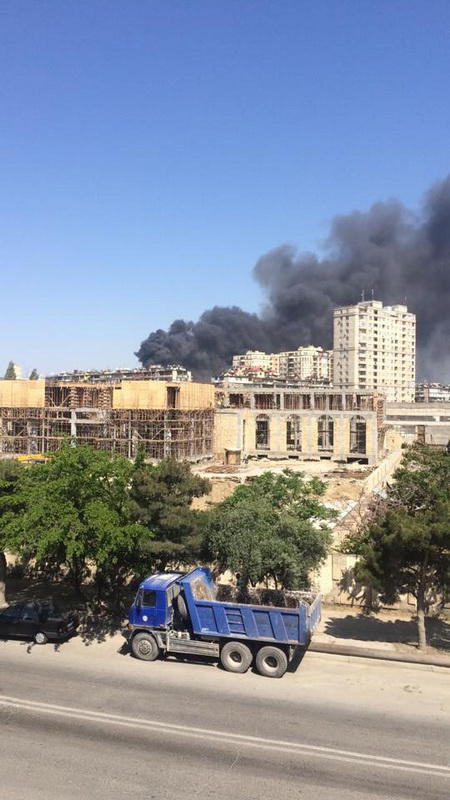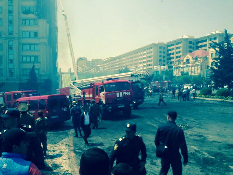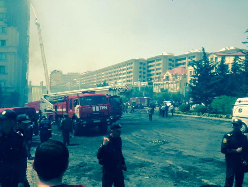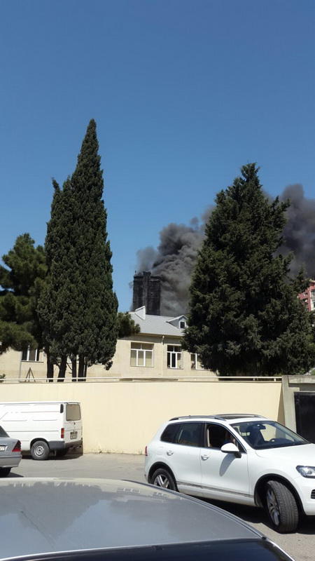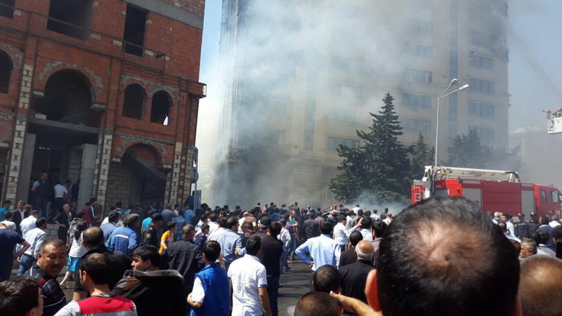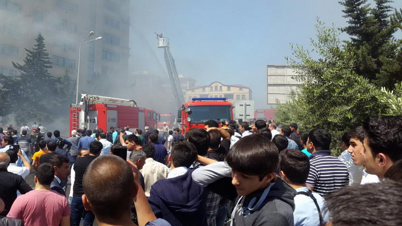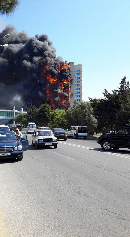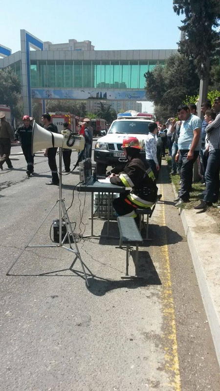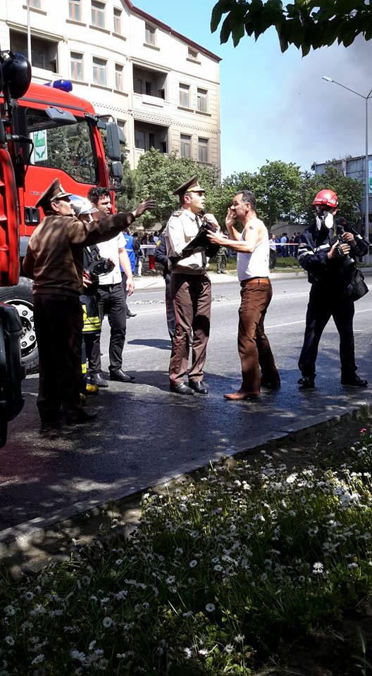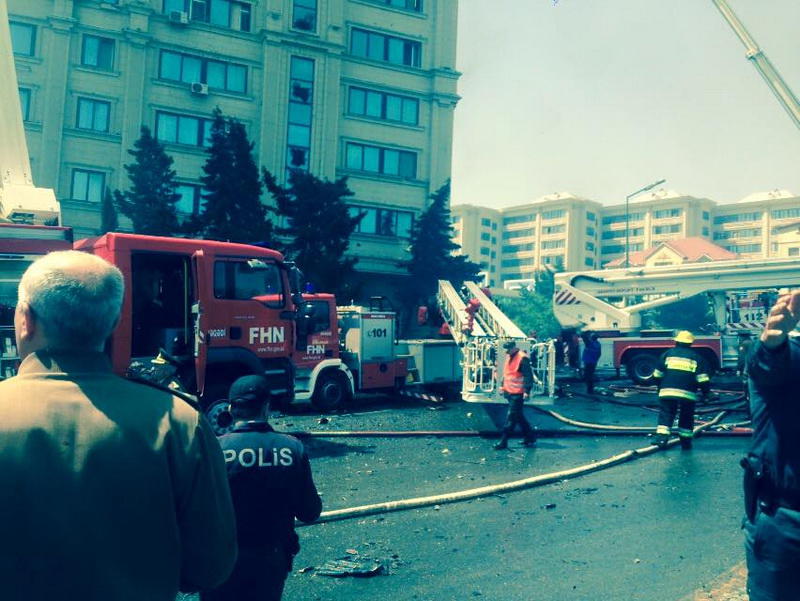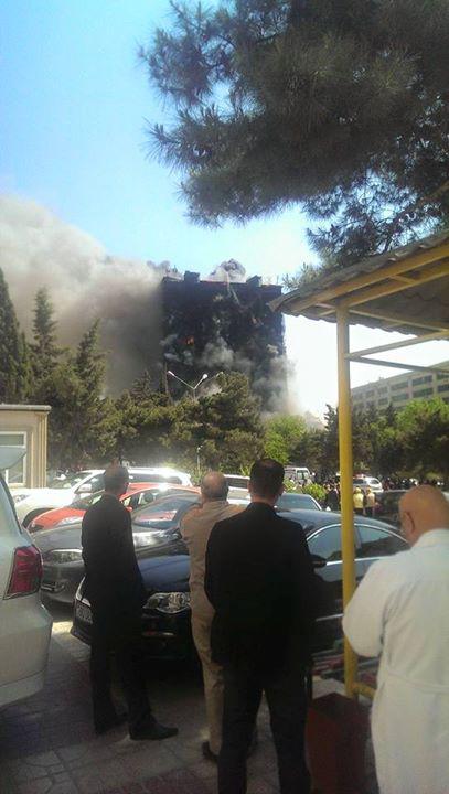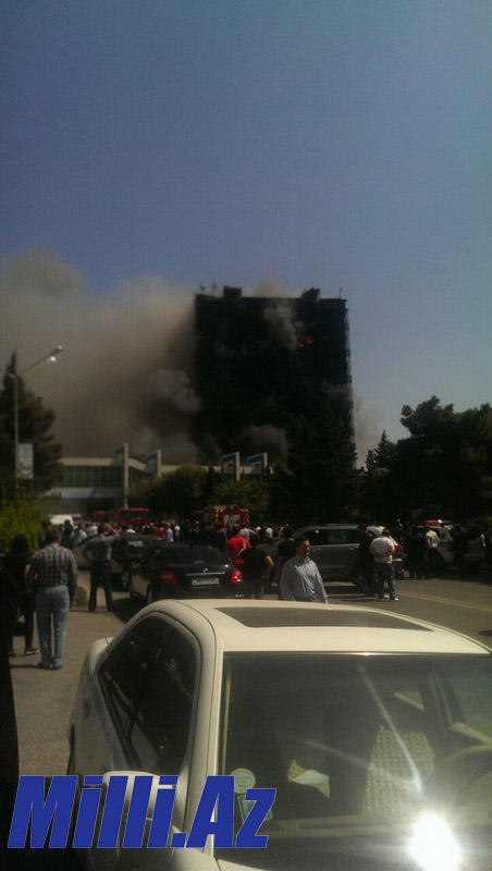 "FNH oradadır. İçəridə adamlar var. Dedilər ki, xilasedicilər içəridə evakuasiyaya başlayıblar. Maşınlara da ziyan dəyib. İnsan tələfatı haqda məlumat hələ ki yoxdur. Arada partlayış səsinə oxşayan səs gəlir, nə olduğunu anlaya bilmirəm. Yaxınlığa kimsə buraxılmır. Yanğınsöndürən maşınlar gəlməkdədir. Orada olduğum müddətdə təcili yardımın kimisə apardığını görmədim. İnşallah ki, içəridən hər kəsi çıxara biliblər".