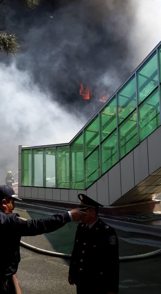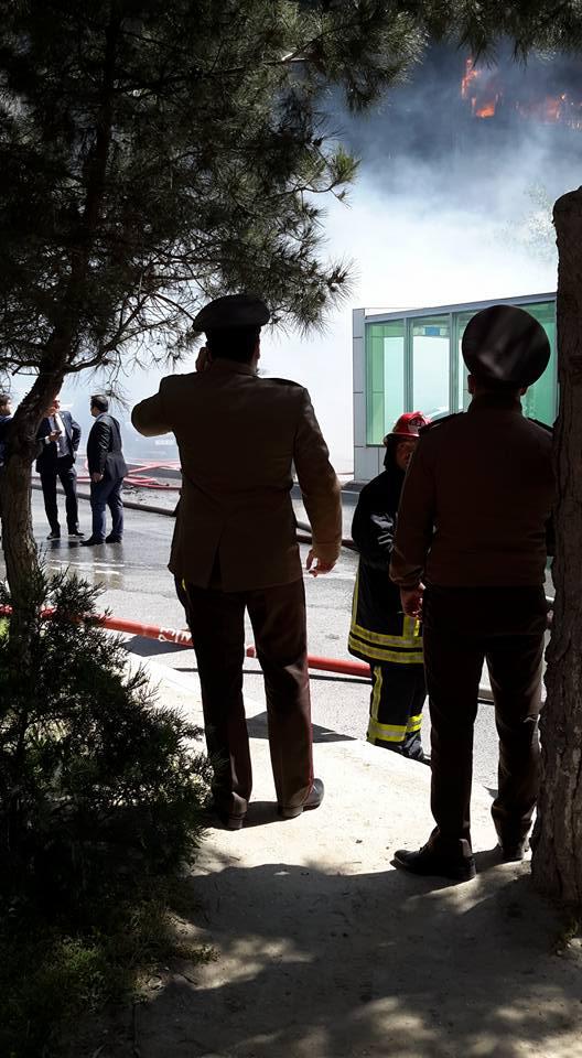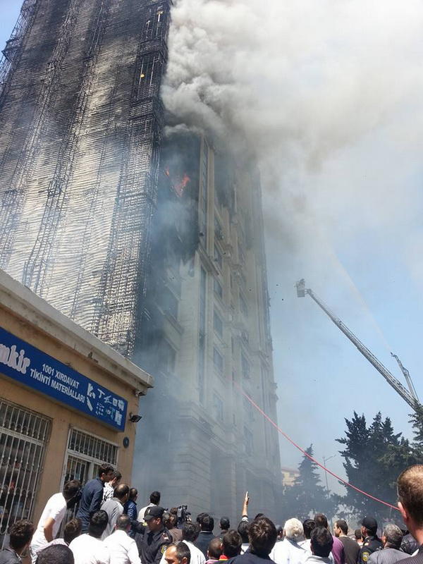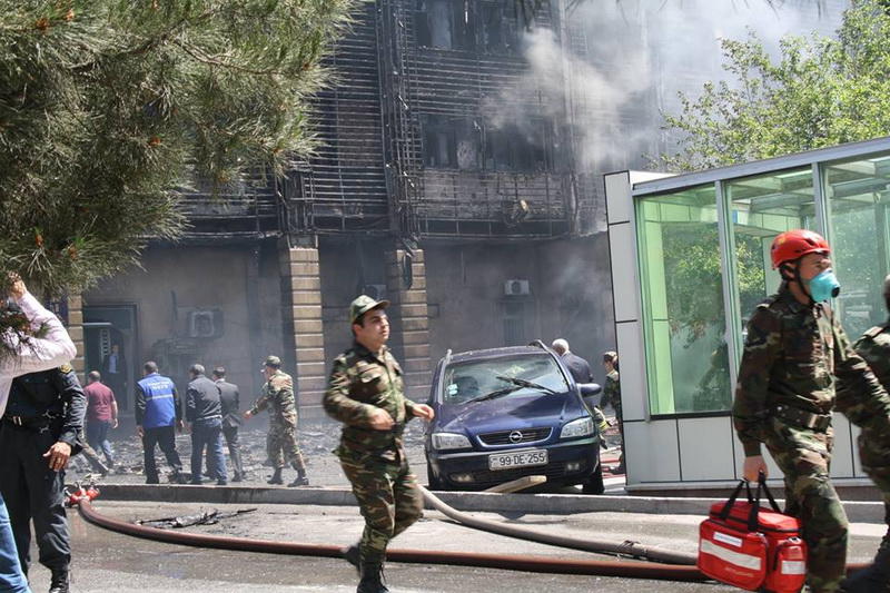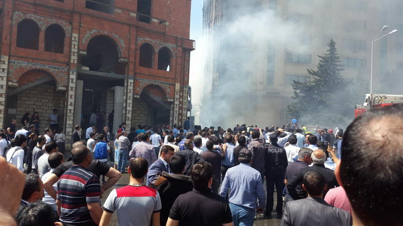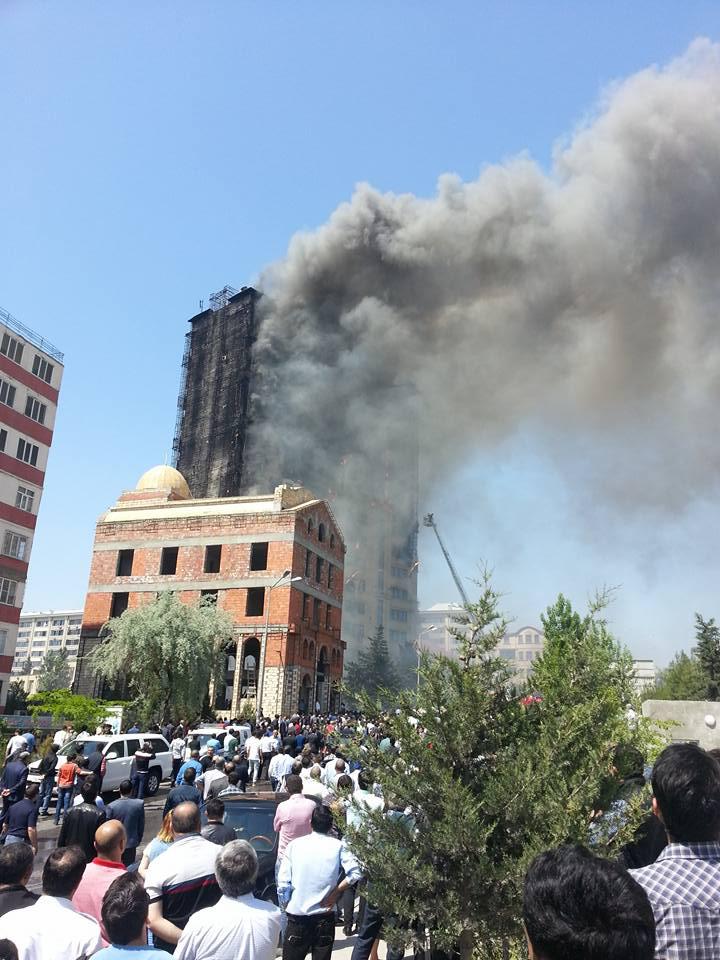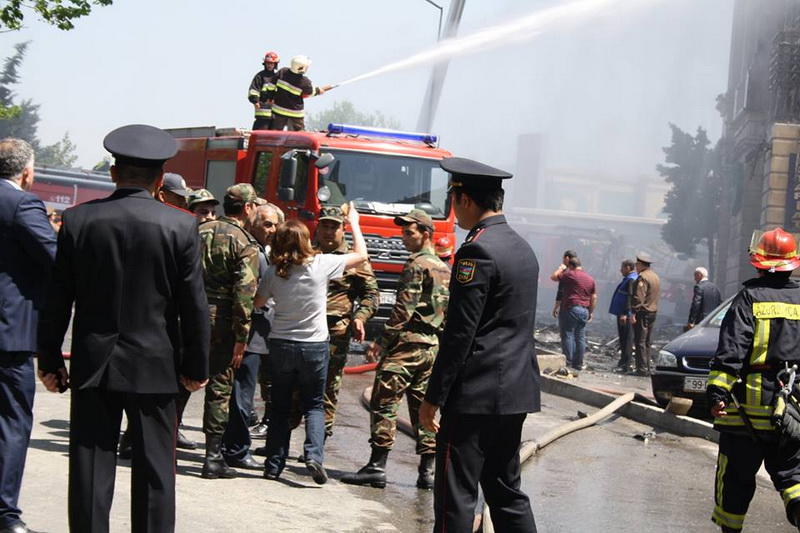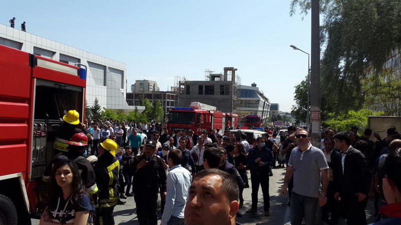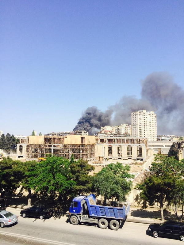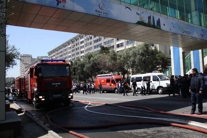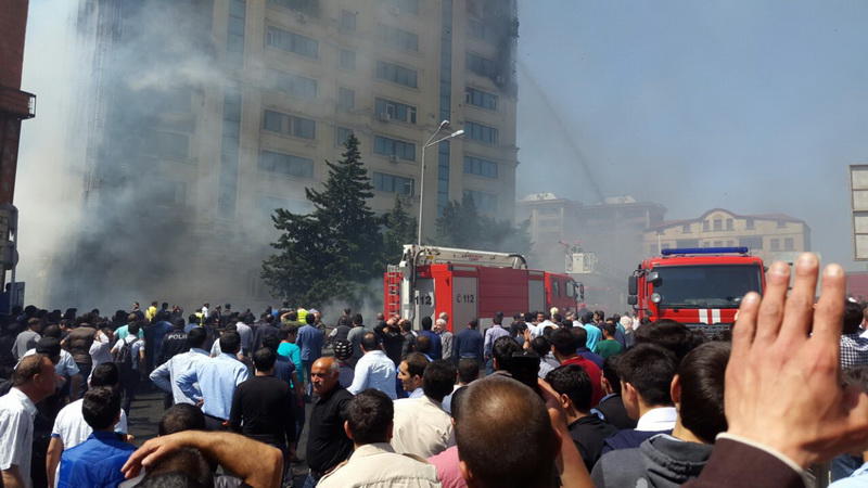 "FNH oradadır. İçəridə adamlar var. Dedilər ki, xilasedicilər içəridə evakuasiyaya başlayıblar. Maşınlara da ziyan dəyib. İnsan tələfatı haqda məlumat hələ ki yoxdur. Arada partlayış səsinə oxşayan səs gəlir, nə olduğunu anlaya bilmirəm. Yaxınlığa kimsə buraxılmır. Yanğınsöndürən maşınlar gəlməkdədir. Orada olduğum müddətdə təcili yardımın kimisə apardığını görmədim. İnşallah ki, içəridən hər kəsi çıxara biliblər".