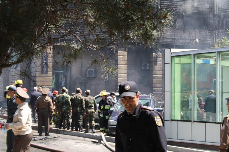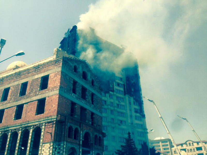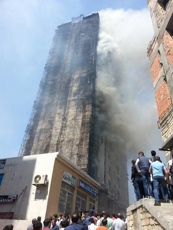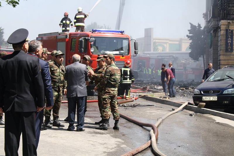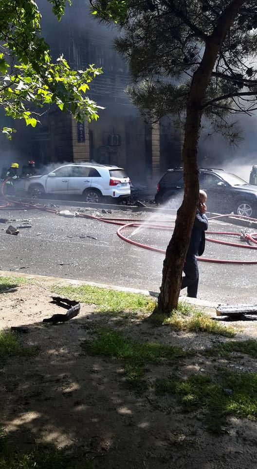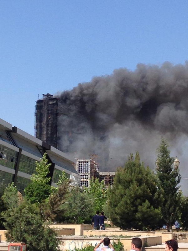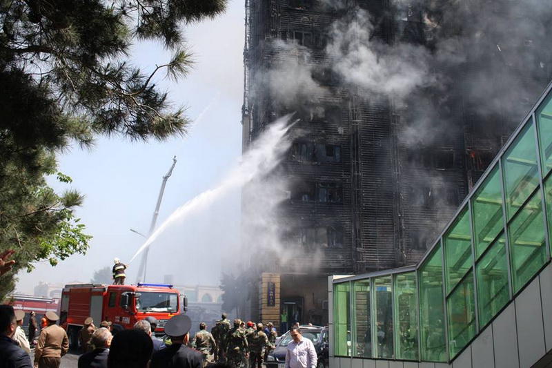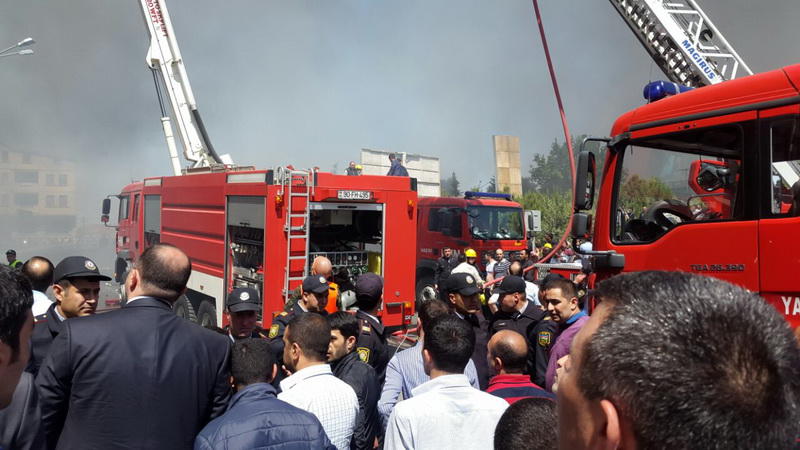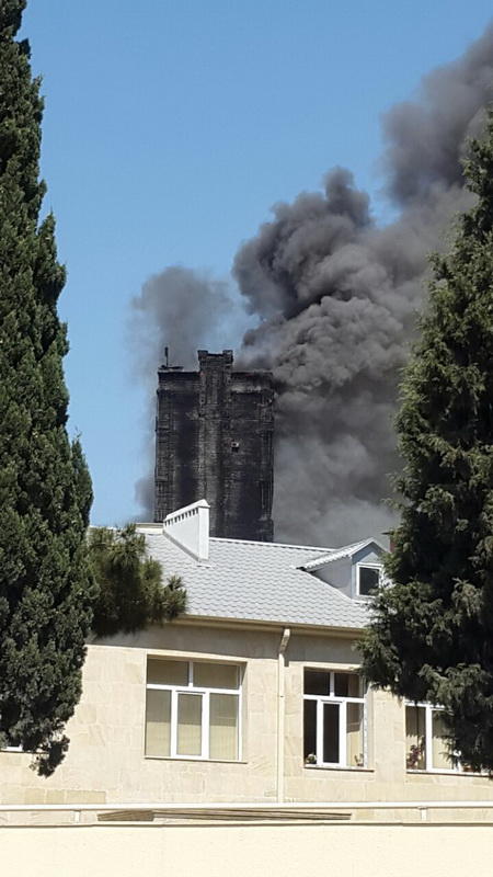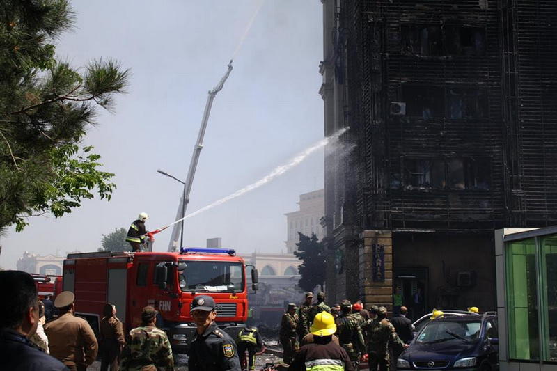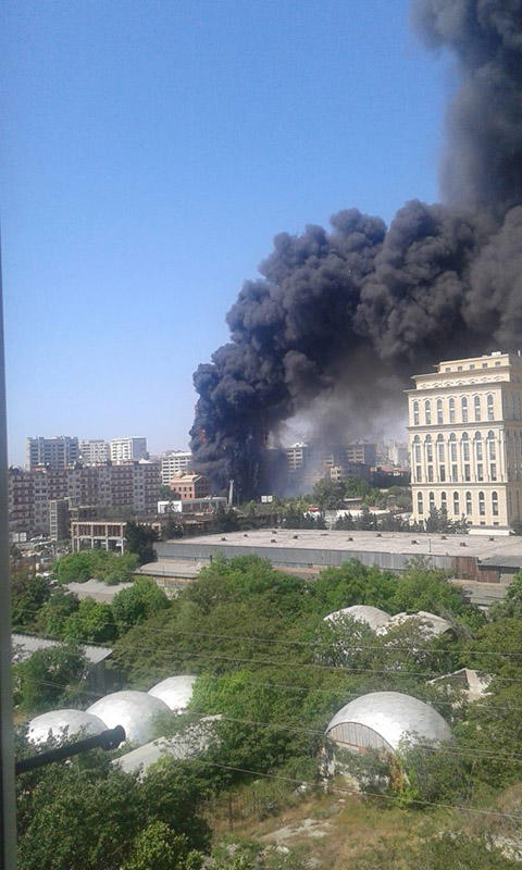 "FNH oradadır. İçəridə adamlar var. Dedilər ki, xilasedicilər içəridə evakuasiyaya başlayıblar. Maşınlara da ziyan dəyib. İnsan tələfatı haqda məlumat hələ ki yoxdur. Arada partlayış səsinə oxşayan səs gəlir, nə olduğunu anlaya bilmirəm. Yaxınlığa kimsə buraxılmır. Yanğınsöndürən maşınlar gəlməkdədir. Orada olduğum müddətdə təcili yardımın kimisə apardığını görmədim. İnşallah ki, içəridən hər kəsi çıxara biliblər".