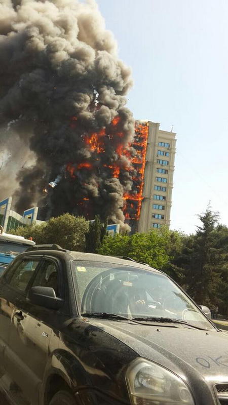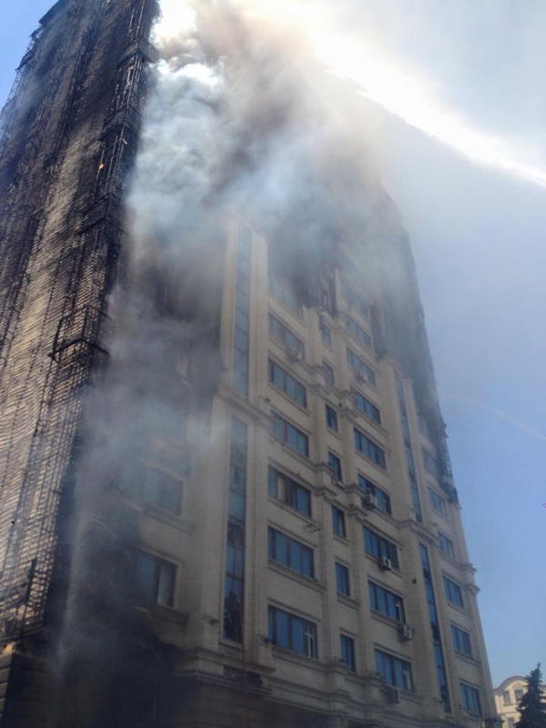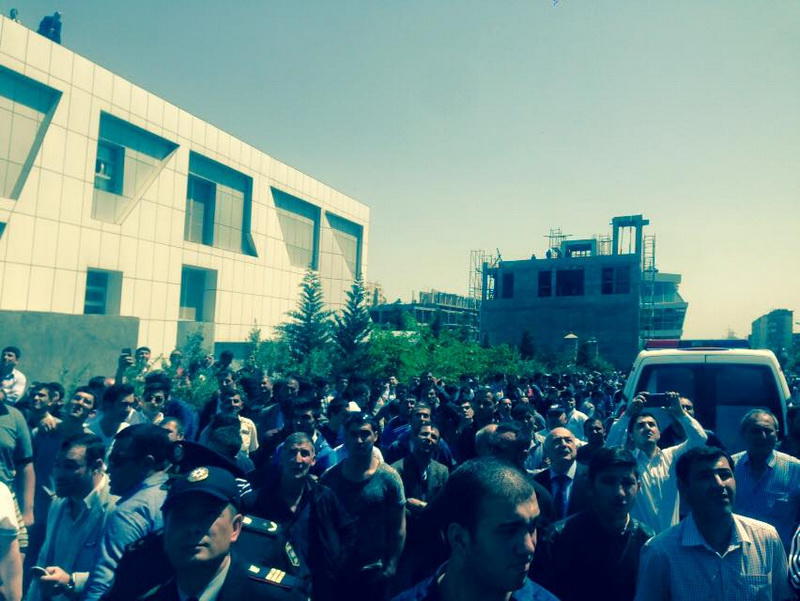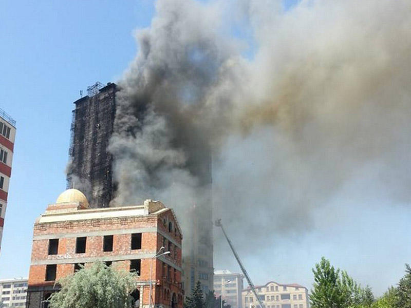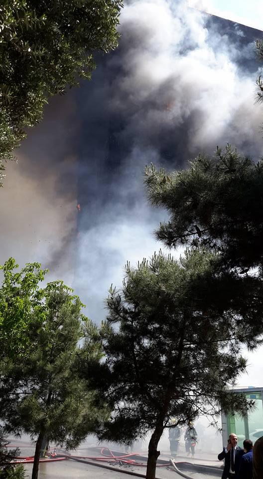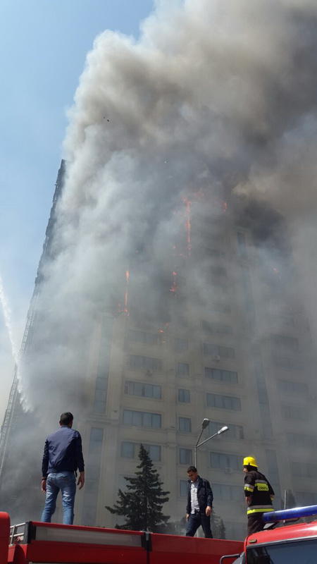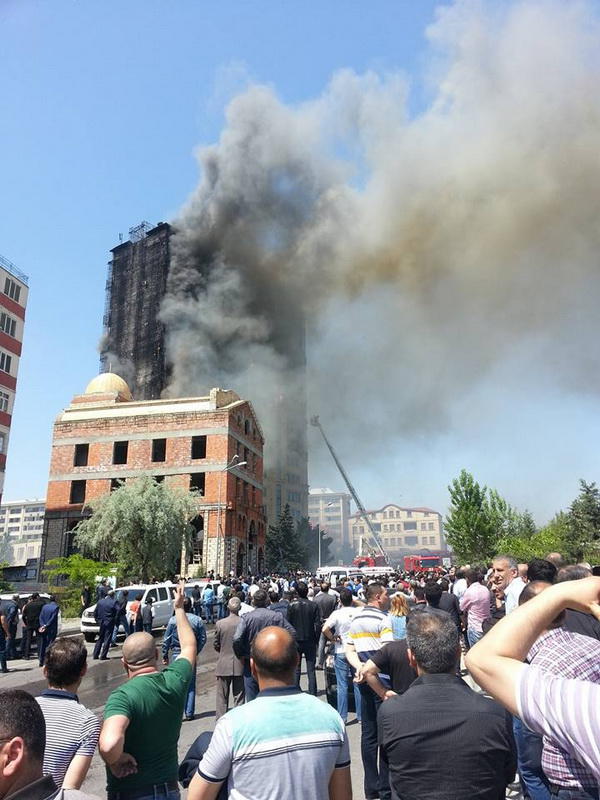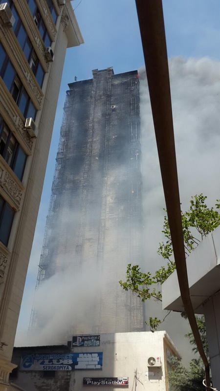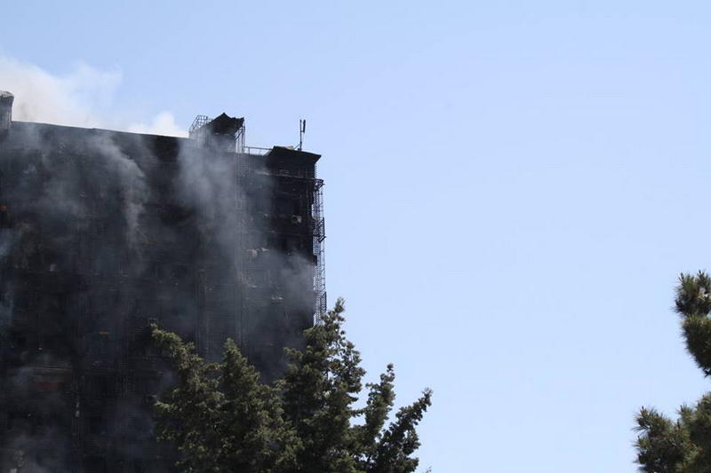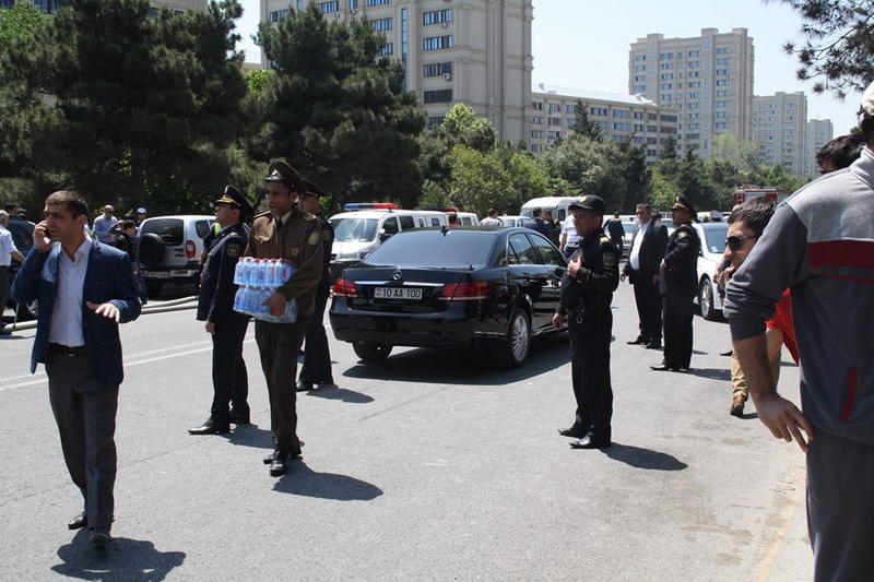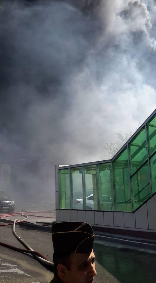 "FNH oradadır. İçəridə adamlar var. Dedilər ki, xilasedicilər içəridə evakuasiyaya başlayıblar. Maşınlara da ziyan dəyib. İnsan tələfatı haqda məlumat hələ ki yoxdur. Arada partlayış səsinə oxşayan səs gəlir, nə olduğunu anlaya bilmirəm. Yaxınlığa kimsə buraxılmır. Yanğınsöndürən maşınlar gəlməkdədir. Orada olduğum müddətdə təcili yardımın kimisə apardığını görmədim. İnşallah ki, içəridən hər kəsi çıxara biliblər".