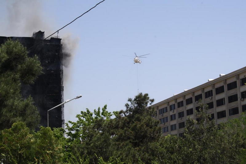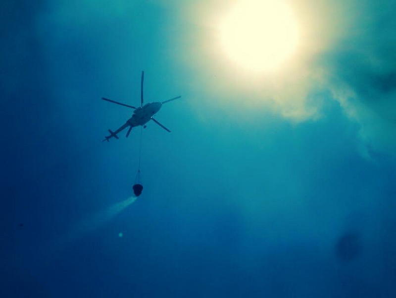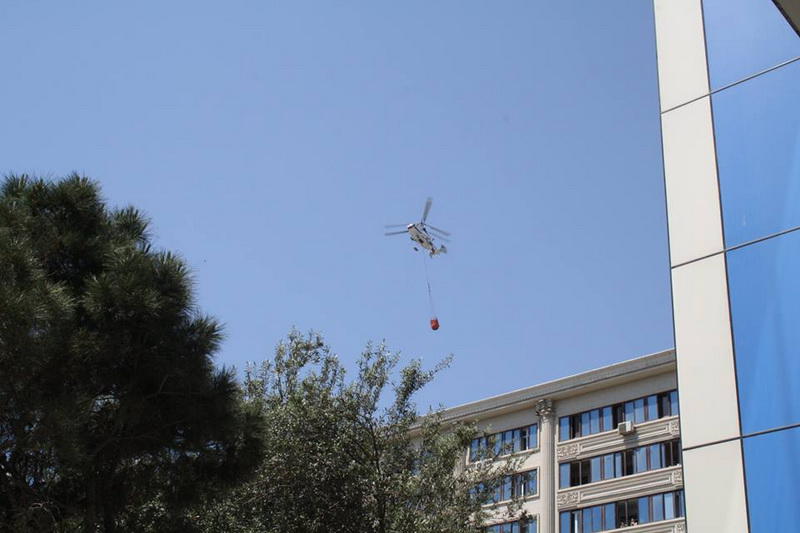 Helikopter 5 dəfə uçuş etsə də, yanğın hələ də söndürülməyib.