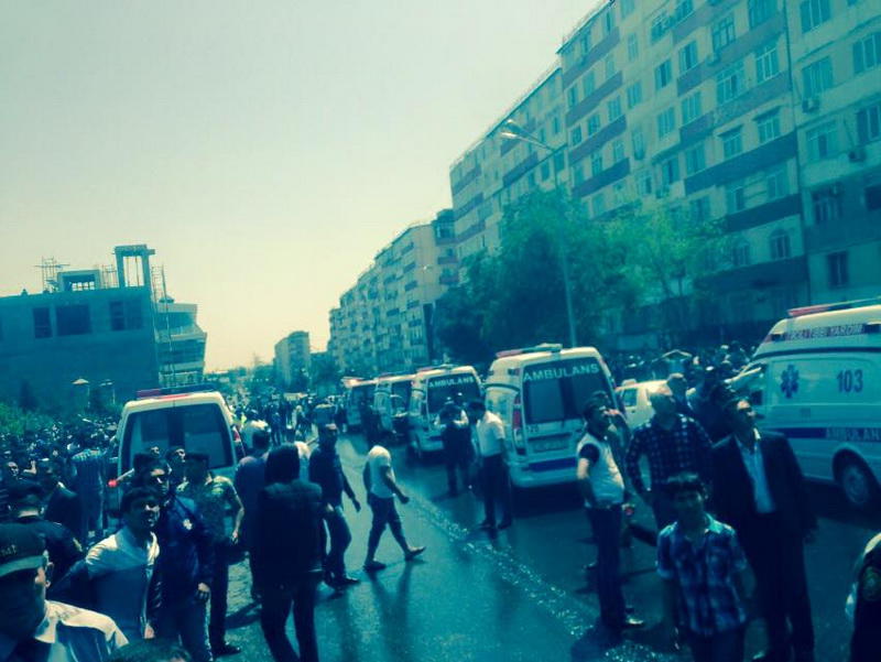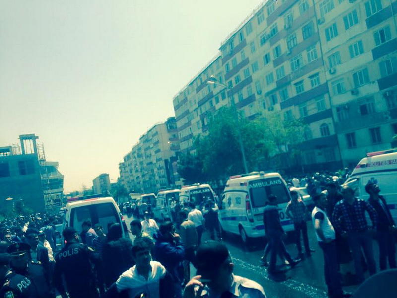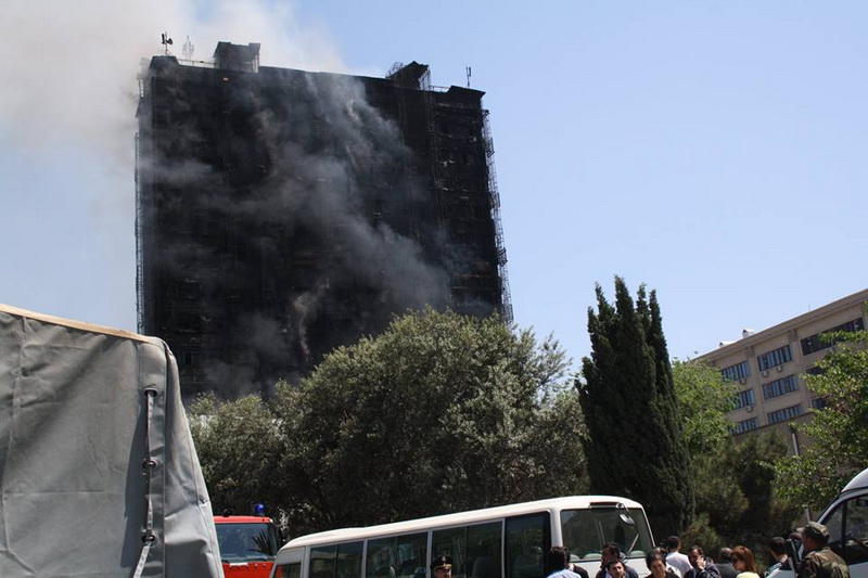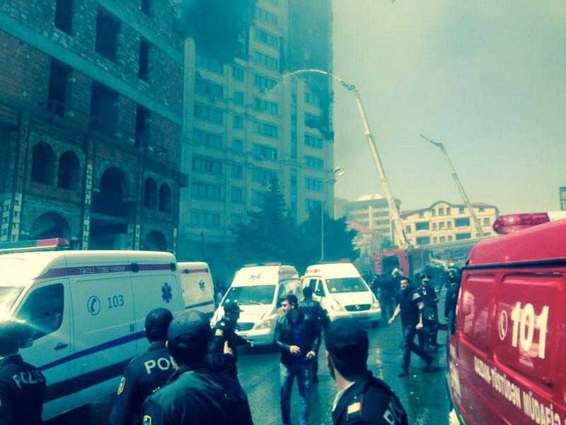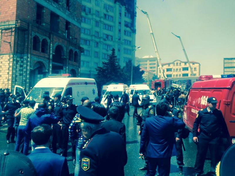 Milli.Az-ın hadisə yerində olan əməkdaşı bildirir ki, ölən və yaralılar var. Hadisə şahidləri bildirirlər ki, ilkin məlumata görə, 3 nəfər ölüb. Ana ilə uşağı özlərini binadan atıblar. Azyaşlı bir uşaq isə 9-cu mərtəbədə köməksiz qalıb.