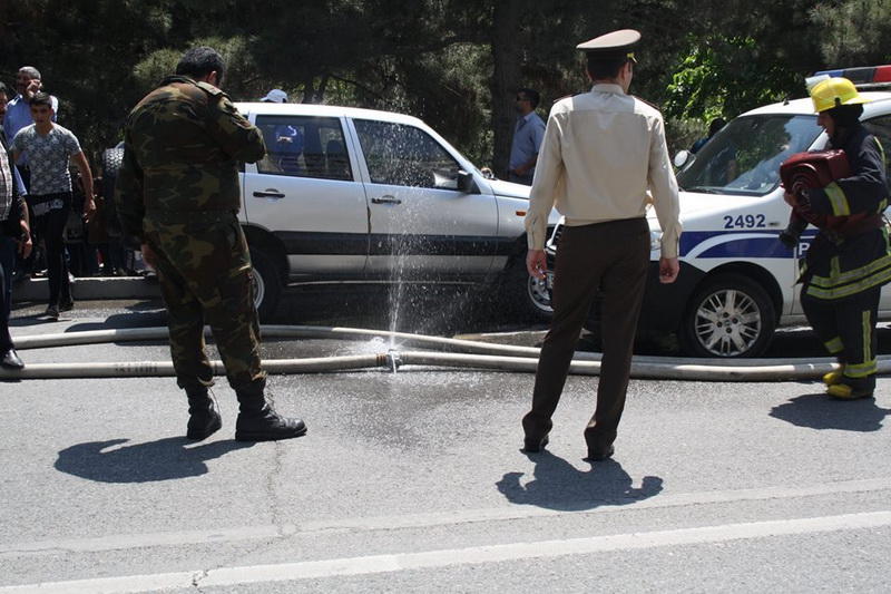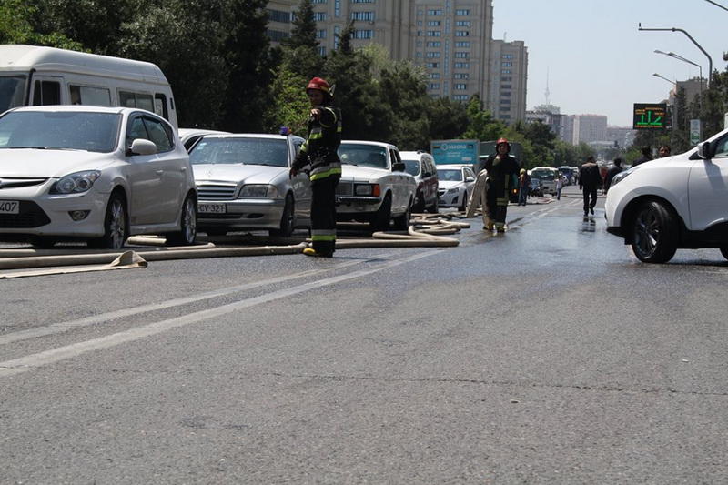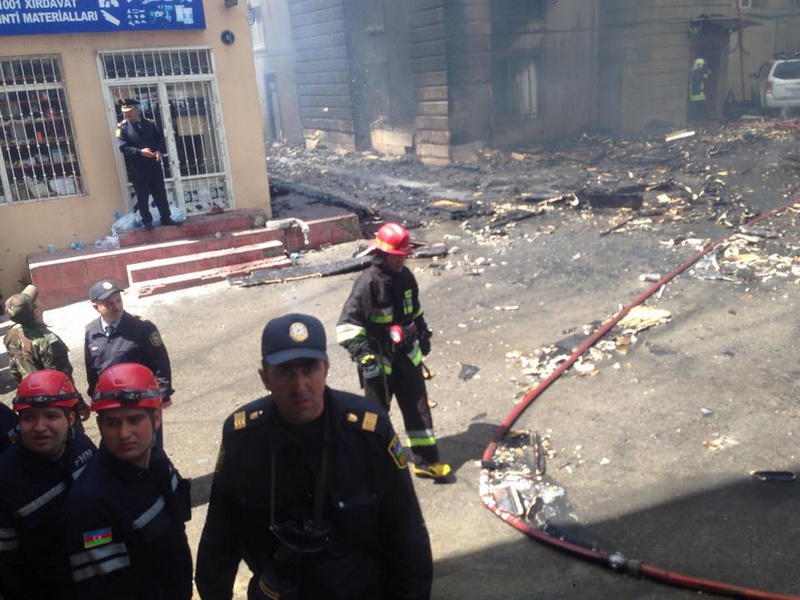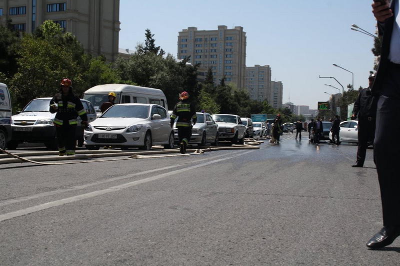 Hadisə yerinə FHN-in əməkdaşları və təcili tibbi yardım maşınları cəlb olunub. Sakinlər və ətrafdakı insanlar evakuasiya olunublar. Şahidlər onu da əlavə edirlər ki, yeni vurulmuş plastik üzlükdən əlavə, şüşələr də istidən partlayaraq ətrafa yayılıb.