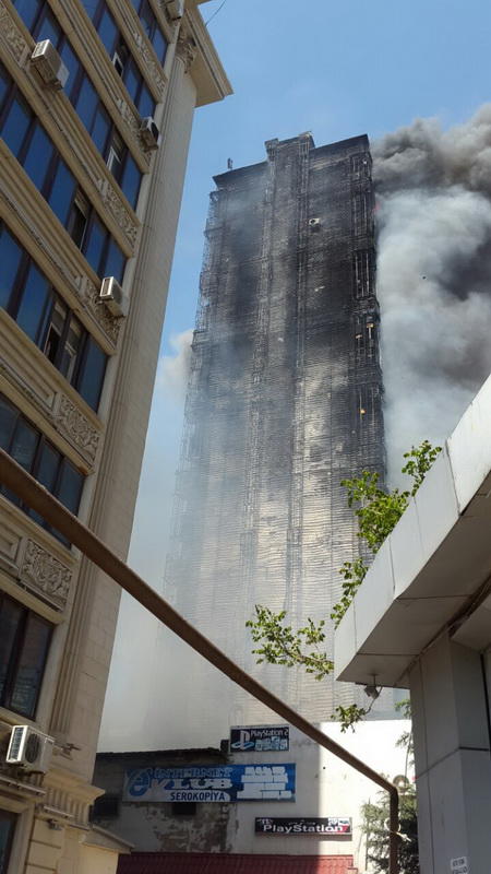 Hadisə şahidlərinin Milli.Az-a verdikləri məlumata görə, hal-hazırda binanın 80 faizi yanaraq külə dönüb. İlkin versiyaya görə, yanğın öncə xırda sahəni əhatə edirmiş, ancaq fasada plastik üzlük çəkildiyinə görə yanğın daha da çoxalıb.