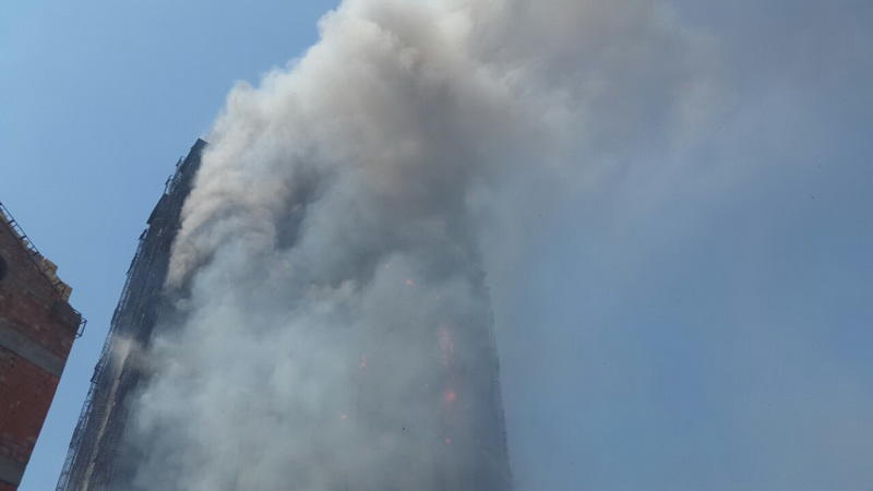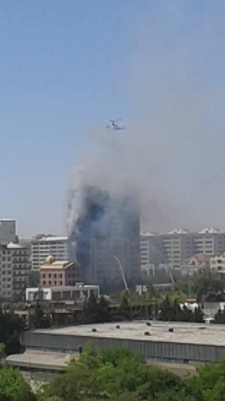 Milli.Az bildirir ki, hadisə yerindən Əzizə İsmayılovanın verdiyi məlumata görə, 14-cü mərtəbədən bir ana ilə uşağı əl yelləyərək kömək gözləyirlər.