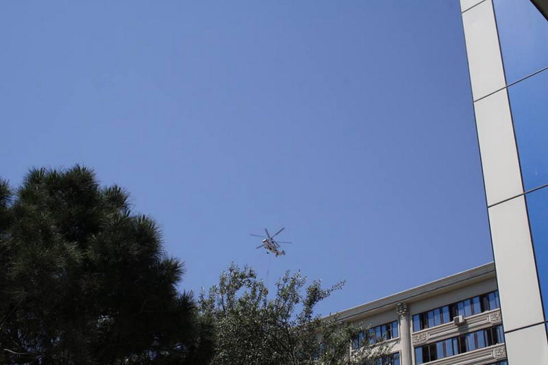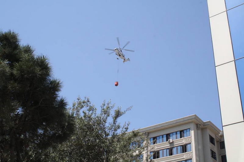 Milli.Az-ın hadisə yerində olan əməkdaşı bildirir ki, xilasetmə işlərinə helikopter cəlb olunub.